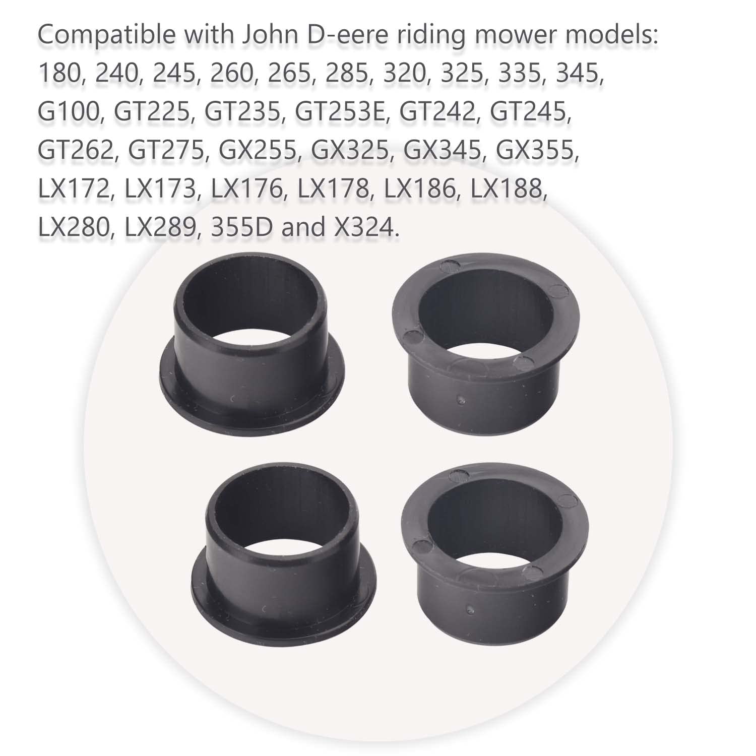 Alles was du brauchst für die John Deere Wartung! Dieses Set enthält gleich 2 komplette Spannarm-Buchsen-Sets für verschiedene John Deere Rasenmäher und Traktoren. Passt zu Modellen wie 180, 240, 245, 260, 265, 285, 320, 325, 335, 345 und vielen mehr. Auch kompatibel mit Sabre und Scotts Serien. Im Lieferumfang: 4 Buchsen, 2 Staubdichtungen, 2 Staubkappen, 2 Sprengring-E-Clips und 4 Distanzscheiben. Ersetzt die originalen Teilenummern M111358, M131119, M122350, 24H1391 und T40189. Super praktisch, wenn mal wieder was verschlissen ist oder die Wartung ansteht. Mit beiden Sets hast du nicht nur Ersatz für jetzt, sondern auch Reserve für später. Perfekt für alle, die ihre John Deere Maschinen selbst instand halten wollen. Einfach einbauen und weiter mähen - kein langes Warten auf Ersatzteile. Ob für den Hobby-Bauern oder den begeisterten Gärtner - mit diesen Qualitätsteilen läuft deine Maschine wieder wie geschmiert. Immer gut, wenn man die richtigen Teile auf Lager hat!