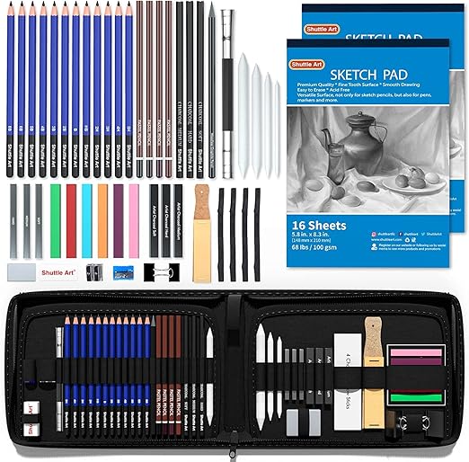 Wow, was für ein umfangreiches Zeichenset! Mit diesen 33 Teilen bist du für jede künstlerische Herausforderung gewappnet. Das Set enthält wirklich alles, was das Künstlerherz begehrt: 12 Graphitstifte in verschiedenen Härtegraden von 2H bis 8B, Kohlestifte in weich/mittel/hart, Carbonstäbe und sogar praktisches Zubehör wie Papierwischer, Radiergummis und einen Bleistiftspitzer. Besonders praktisch ist der knetbare Radiergummi, mit dem du Highlights setzen kannst, und der Bleistiftverlängerer, damit du auch die letzten Stummeln noch verwenden kannst. Alles ist in einer stylischen schwarzen Tragetasche mit Reißverschluss verpackt - perfekt für unterwegs oder um deine Utensilien ordentlich zu verstauen. Egal ob du Anfänger bist oder schon Erfahrung hast, mit diesem Set kannst du sofort loslegen und deine Zeichenfähigkeiten verbessern. Die Stifte sind übrigens aus umweltfreundlichen Materialien und die Mine ist extra bruchfest. Einfach spitzen und loszeichnen! Das macht auch als Geschenk eine super Figur - für Kinder, Erwachsene oder angehende Künstler.