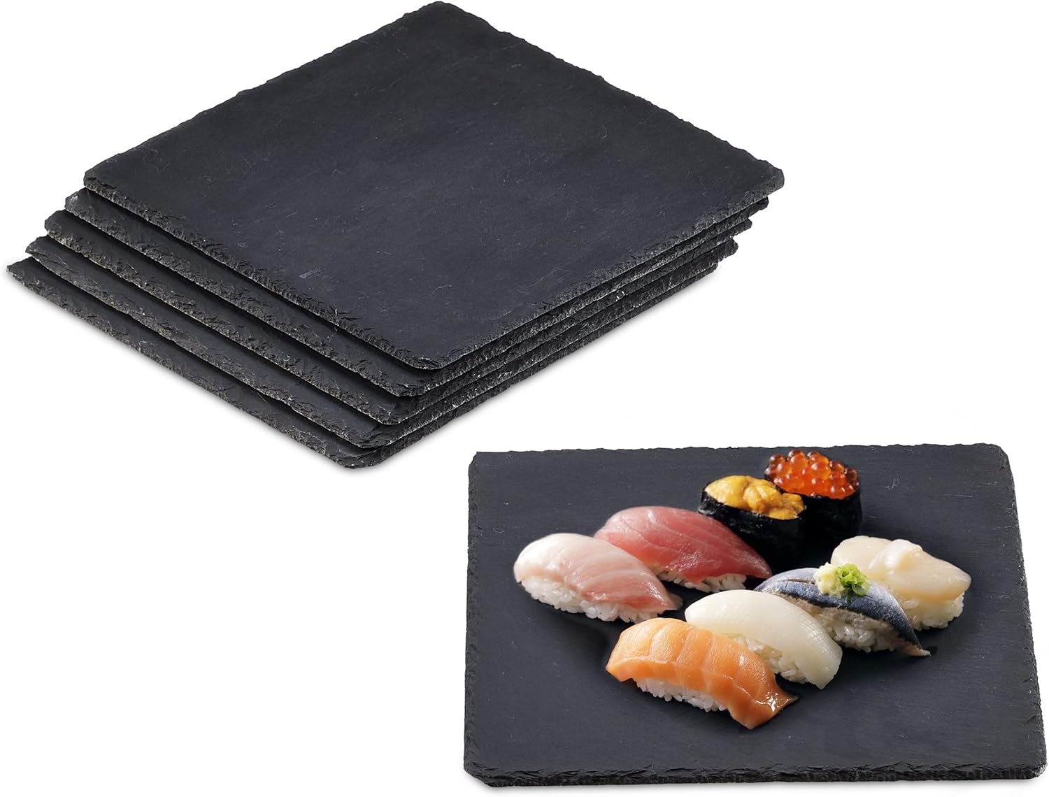 Du liebst es, Gäste zu beeindrucken? Mit diesen sechs Schieferplatten im Anthrazit-Look wird jedes Essen zum Hingucker! Jede Platte misst 30 x 20 cm und ist ca. 5 mm dick. Du kannst sie für Käse, Wurst, Sushi, Desserts oder sogar als Untersetzer nutzen. Das Besondere: Sie sind mit Kreide beschreibbar – ideal, um Speisen zu benennen oder Gäste persönlich zu begrüßen. Unter jeder Platte sind rutschfeste Noppen aus EVA, damit nichts verrutscht. Und weil Schiefer ein Naturprodukt ist, hat jede Platte ihren eigenen Charakter – keine ist genau wie die andere. Perfekt für Familienfeiern, Partys oder gemütliche Abende. Einfach nach dem Gebrauch abwischen und trocken lagern. Dieses Set macht deinen Tisch nicht nur schöner, sondern auch praktischer. Hol dir die Relaxdays Schieferplatten und serviere mit Stil!