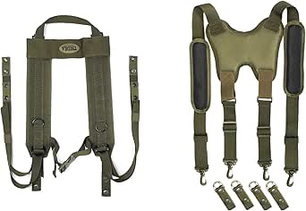 Entlastung für deinen Kampfgürtel! Diese H-Harness verteilt das Gewicht gleichmäßig auf den Schultern und entlastet so deine Hüften. Aus robustem Nylon, gepolstert für Komfort und mit YKK-Schnallen verstellbar. Passt für Gürtel von 12,7–15,9cm Höhe. Ideal für Airsoft, Paintball, Outdoor oder Security. Einfach an deinem Gürtel befestigen und schon trägst du schwere Ausrüstung bequemer!