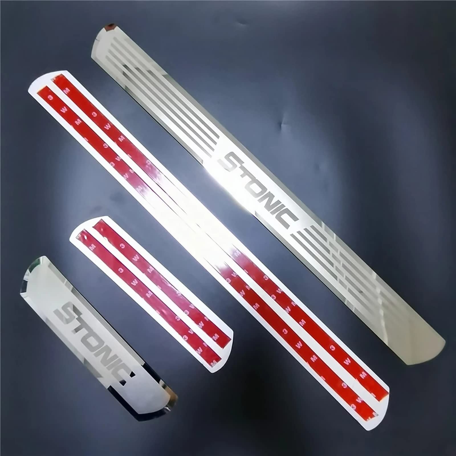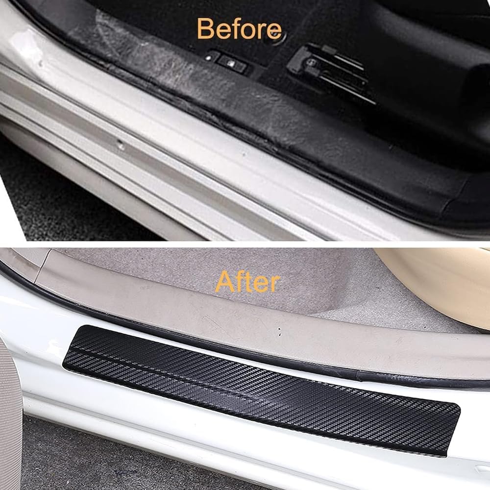Schütze deinen Kia Stonic vor lästigen Kratzern! Diese 4 Kohlefaser-Aufkleber bewahren deine Türschwellen vor Abnutzung und Schmutz. Das hochwertige Material ist witterungsbeständig, verblasst nicht in der Sonne und bleibt lange schön. Die stark haftende 3M Klebeband-Rückseite hält bombenfest, ist aber dennoch einfach zu montieren - kein Werkzeug nötig! Einfach die Schwellen gründlich reinigen, Schutzfolie abziehen und aufkleben. Schon sind deine Türschwellen vor Schuhen, Einkaufstüten und anderen Gefahren geschützt. Die Aufkleber können sich perfekt der Krümmung deines Autos anpassen und decken sogar vorhandene Kratzer ab. Dein Kia sieht sofort gepflegter aus! Warte nach dem Anbringen 48 Stunden bevor du dein Auto wäschst - dann hält der Schutz garantiert lange. Einfacher geht's nicht, um dein Auto zu schützen!