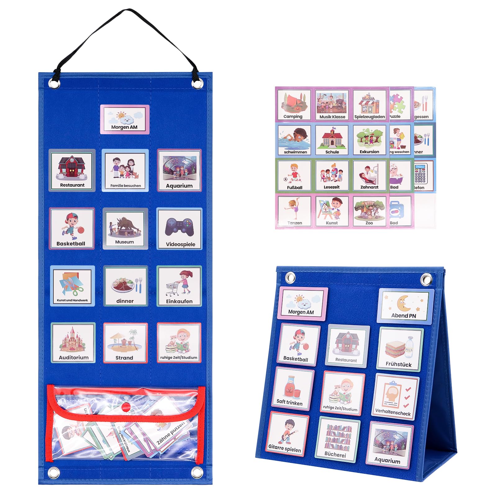 So macht Routine Spaß! Dieser bunte visuelle Stundenplan hilft deinen Kindern, den Tag besser zu strukturieren. Mit 45 verschiedenen Aktivitätskarten mit niedlichen Motiven - von Zähneputzen über Hausaufgaben bis zum Spielen. Plus 9 leere Karten für individuelle Aktivitäten. Die Filztafel misst 13,3x61,5cm und kommt mit praktischer Aufbewahrungstasche. Einfach die Karten mischen und den Tagesablauf zusammenstellen - so verstehen auch kleinere Kinder, was als nächstes kommt. Perfekt für Zuhause, Kindergarten oder unterwegs. Fördert Selbstständigkeit und macht Lust auf Aufgaben. Ob morgens beim Anziehen oder abends beim Aufräumen - mit diesem Plan wird alles einfacher und spaßiger!