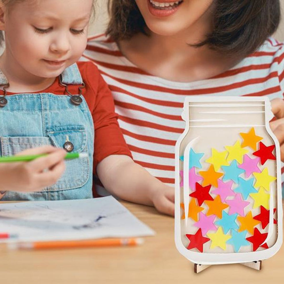 Suchst du eine tolle Möglichkeit, deine Kinder zu motivieren? Dieses Belohnungsglas mit dem süßen Sternen-Design ist genau das Richtige! Aus hochwertigem Holz gefertigt, ist es robust und kindersicher. Die glatte Oberfläche und das fröhliche Design wecken sofort das Interesse der Kleinen. Perfekt für zu Hause oder in der Schule - ob für Hausaufgaben, Hilfsbereitschaft oder gutes Benehmen. Das Prinzip ist ganz einfach: Für jede gute Tat kommt etwas in das Glas, und die Kinder können ihre Fortschritte direkt sehen. So lernen sie spielerisch, Verantwortung zu übernehmen und positive Gewohnheiten zu entwickeln. Ein super Tool für Eltern und Lehrer, um Kinder zu unterstützen und zu motivieren. Einfach hinstellen und sich über die Begeisterung freuen!