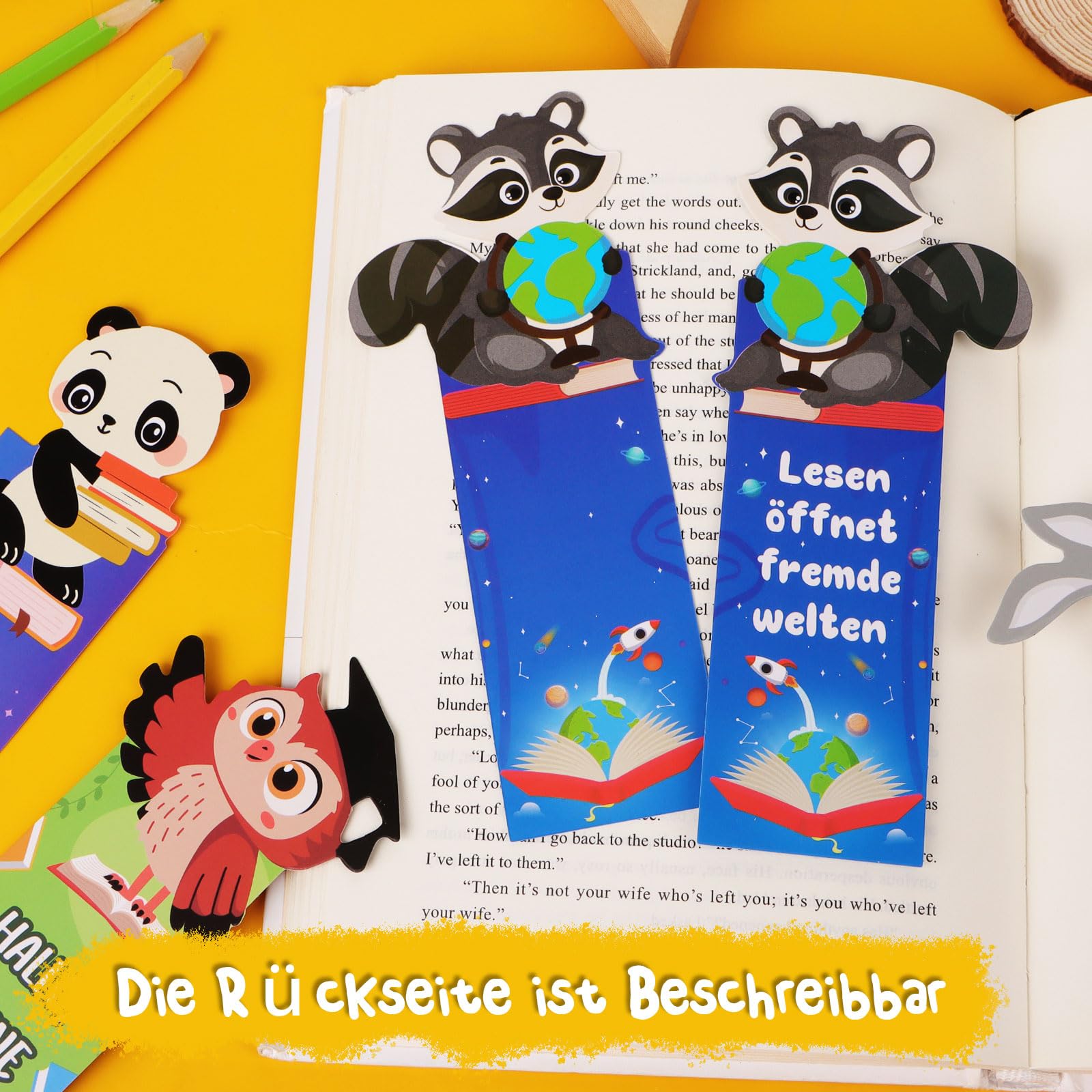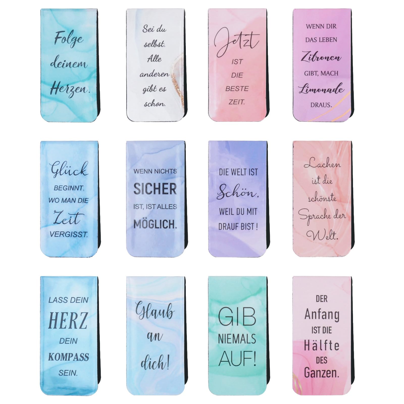 Total süße Lesezeichen für kleine Bücherwürmer! Dieses Set mit 12 verschiedenen magnetischen Lesezeichen begeistert mit niedlichen Tiermotiven und motivierenden Sprüchen über das Lesen. Die bunten Designs wecken die Leselust und machen jedes Buch zum Abenteuer. Besonders praktisch: Die Magnet-Verschlüsse halten bombenfest und rutschen nicht raus wie normale Lesezeichen. Die abgerundeten Ecken sind extra kinderfreundlich und kratzen nicht an zarten Händen. Perfekt als Mitgebsel für Kindergeburtstage, als kleine Belohnung für gute Schulnoten oder als Geschenk für Buchliebhaber. Aus hochwertigem, beschichtetem Papier mit starken Magneten - absolut sicher und langlebig. Die klaren Drucke bleiben auch bei häufigem Gebrauch schön bunt. Ideal für Schulbücher, Tagebücher oder die Lieblingslektüre. Mach das Lesenlernen zum Spaß - mit diesen charmanten Lesezeichen!