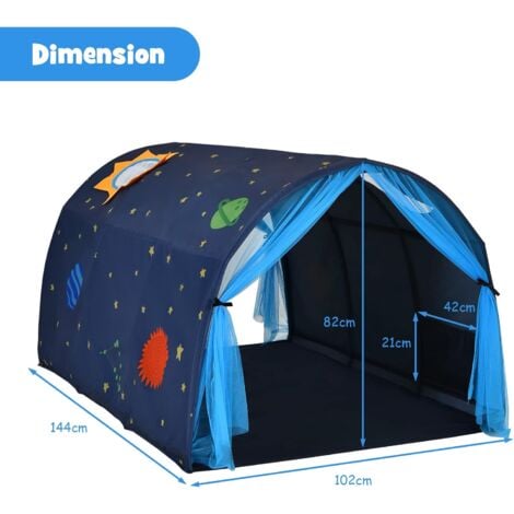 Wow, was für ein magisches Spielzelt! Mit den süßen Mond- und Sternen-Motiven wird das Kinderzimmer im Handumdrehen zum Abenteuerland. Deine Kleinen werden es lieben, in dieser gemütlichen Höhle zu spielen, zu lesen oder einfach zu träumen. Der praktische Klettverschluss am Eingang gibt's ihnen das Gefühl von Privatsphäre. Und das Beste: Das Zelt ist super schnell aufgebaut - keine komplizierte Anleitung nötig! Die Fiberglas-Stangen sind leicht aber stabil, das Polyester-Material robust. Bei schönem Wetter kann das Zelt auch mal mit nach draußen genommen werden. Und wenn's nicht gebraucht wird, einfach zusammenfalten und in der praktischen Tragetasche verstauen. Perfekt für Kinder ab 3 Jahren - ein Spielzeug, das die Fantasie anregt und lange Freude bereitet. Einfach zauberhaft!