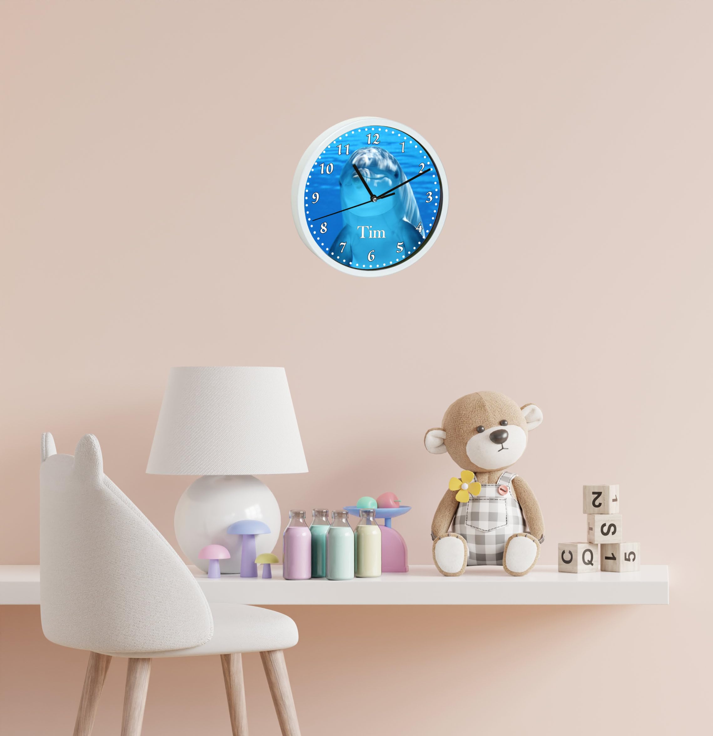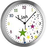 Eltern, diese personalisierte Wanduhr ist das perfekte Geschenk fürs Kinderzimmer! Mit 19,5cm Durchmesser und bunten Sternen - super süß und kindgerecht! Das lautlose Uhrwerk tickt nicht - eure Kleinen schlafen ruhig ohne störende Geräusche! Könnt mit dem Namen eures Kindes personalisiert werden - ein ganz besonderes Unikat! Aus robustem Kunststoff mit Echtglasscheibe - sicher und langlebig! Die klaren Zahlen machen das Uhrlesen-Lernen super einfach! Benötigt nur 1 AA Batterie - einfach einsetzen und aufhängen! Perfekt für Mädchen und Jungen - passt in jedes Kinderzimmer! Ob zur Geburt, zum Geburtstag oder einfach so - diese Uhr bringt Freude! Einfach bestellen, Namen angeben und euer persönliches Meisterwerk erhalten!