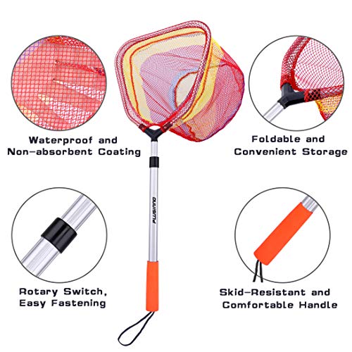 Hey, kleine Angler und Naturforscher aufgepasst! Mit diesem superpraktischen Kescher von PLUSINNO macht das Fangen von Fischen, Garnelen oder sogar Schmetterlingen richtig Spaß! Der Kescher hat ein teleskopierbares System - von 74,2 cm bis 107,2 cm kannst du die Länge ganz easy anpassen, genau richtig für Kinderhände. Das dreieckige Netz (31x27,4 cm Öffnung, 29 cm tief) ist super zum Schwingen im Wasser. Der Griff ist aus robustem Aluminium und hat einen rutschfesten EVA-Handgriff, damit er auch nass nicht aus der Hand fällt. Das Nylon-Netz ist wasserabweisend beschichtet - das heißt, es saugt sich nicht voll mit Wasser und trocknet super schnell. Und das Beste: Das bunte Regenbogen-Design sieht nicht nur cool aus, sondern macht den Kescher zur echten Profi-Ausrüstung für Kinder! Ob zum Angeln mit Papa, zum Schmetterlinge beobachten oder einfach nur zum Plantschen am See - dieses Kescher-Set ist der perfekte Begleiter für alle Outdoor-Abenteuer. Ein super Geschenk für Geburtstage, Weihnachten oder einfach so!