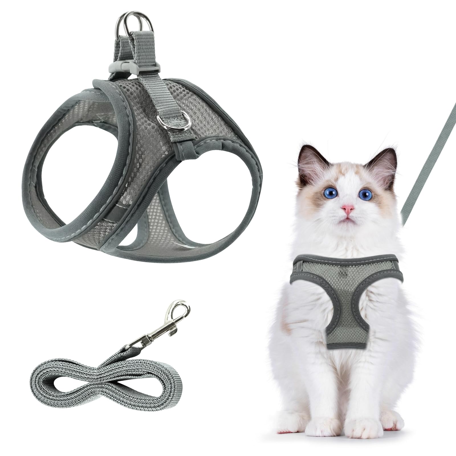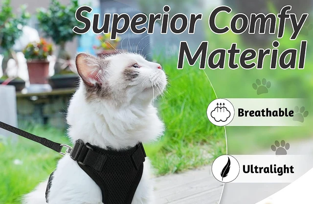 Deine Katze will die Welt entdecken? Mit diesem Rabbitgoo Katzengeschirr geht's sicher nach draußen! Das Westen-Design verteilt den Druck der Leine gleichmäßig auf Brust und Schulter - viel sicherer als einfache Halsbänder. Mit 4 verstellbaren Riemen und seitlichen Sicherheitsschnallen sitzt das Geschirr perfekt und ist ausbruchssicher. Wichtig: Vor dem Kauf messen! Passt für Halsumfang 21,6-27,9cm und Brustumfang 34,9-40,6cm. Der Kopfumfang sollte mindestens 25,4cm betragen. Das atmungsaktive Air-Mesh-Material ist superweich und leicht (nur 100g), während reflektierende Streifen deine Katze in der Dämmerung sichtbar machen. Die 150cm lange Nylon-Leine gibt genug Bewegungsfreiheit. Einfach an- und ausziehen mit den 2 seitlichen Schnallen. Perfekt für Spaziergänge, Tierarzt-Besuche oder Reisen. So wird jeder Ausflug zum sicheren Abenteuer für deine neugierige Samtpfote!