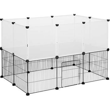 Dieser vielseitige Laufstall ist perfekt für deine kleinen Lieblinge! Mit 12 Panels à 35x35cm kannst du dir ganz individuell dein eigenes Gehege zusammenbauen - ob rechteckig, quadratisch oder in anderen Formen. Ideal für Meerschweinchen, Kaninchen, kleine Welpen (unter 5kg), Katzen oder andere Kleintiere. Die Panels sind aus robustem, wasserfestem Material das rostbeständig ist und damit lange hält. Die rutschfesten Füße und Kabelbinder sorgen für zusätzliche Stabilität, sodass nichts verrutscht. Einfach zusammenzustecken - keine komplizierte Montage nötig! Perfekt für drinnen und draußen, leicht zu reinigen und platzsparend zu verstauen. So schaffst du deinem Tier einen sicheren Bereich zum Spielen und Bewegen, ohne dass du ständig ein Auge darauf haben musst. Ob als separates Gehege, als Abtrennung in einem Raum oder als Transportbox - die Möglichkeiten sind endlos. Ein praktischer Helfer für jeden Tierbesitzer, der seinem Liebling mehr Freiheit und Sicherheit bieten möchte!