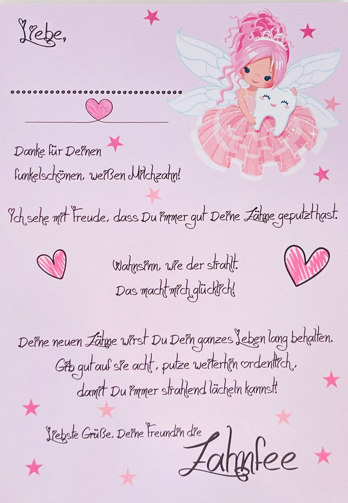Was für eine süße Überraschung für die Zahnfee! Dieses komplett Set macht den Milchzahnverlust zu einem besonderen Erlebnis für deine Tochter, Nichte oder Patenkind. Enthalten ist ein wunderschönes, buntes Armband mit 20 glänzenden Perlen, einer niedlichen Zahnfee-Figur, einem Milchzahn-Anhänger und einem Sternchen. Das Besondere: Im Milchzahn-Anhänger kann der ausgefallene Zahn aufbewahrt werden - eine bleibende Erinnerung! Die Länge ist von 15-30 cm verstellbar und passt so für Mädchen ab 3 Jahren. Dazu gibt es eine liebevoll gestaltete 'Post von der Zahnfee'-Karte mit persönlichen Worten und einem praktischen Stoffbeutel zur Aufbewahrung. Hergestellt aus hautverträglichem, hypoallergenem Harz ohne schädliche Stoffe. Perfekt als Geschenk zur ersten ausgefallenen Zahn, zum Geburtstag, zu Weihnachten oder zur Taufe. Ein emotionales Geschenk, das noch Jahre später schöne Erinnerungen weckt!