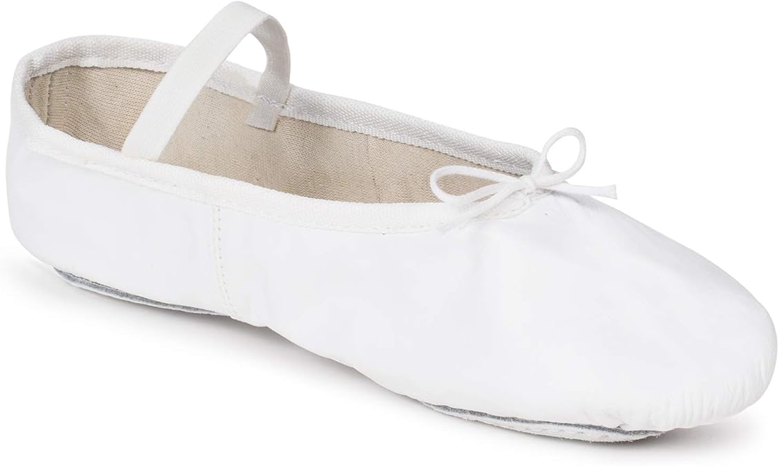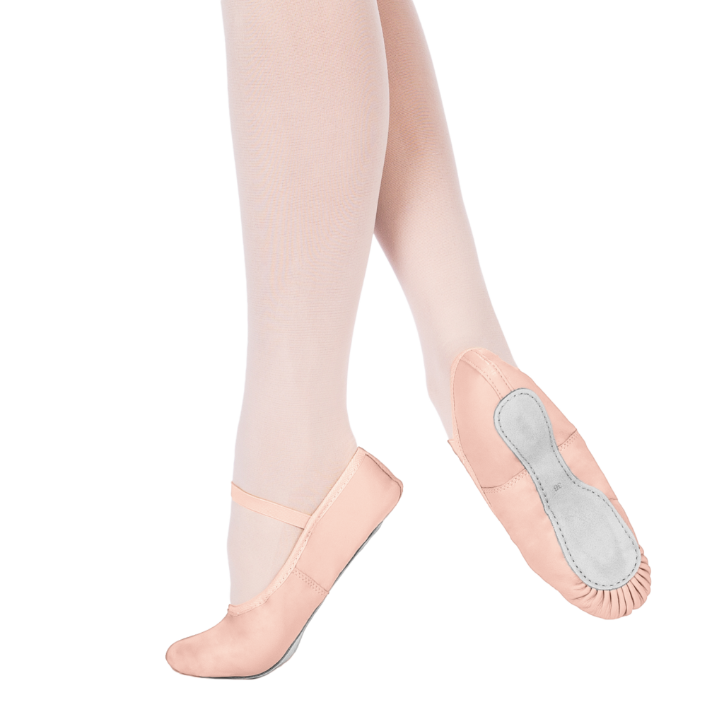 Perfekte Ballettschuhe für angehende Tänzerinnen! Aus weichem Rindsleder mit geteilter Sohle - ideal für Drehungen und gleitende Bewegungen. Elastische Bänder statt Schnürsenkel für bequemen Sitz.