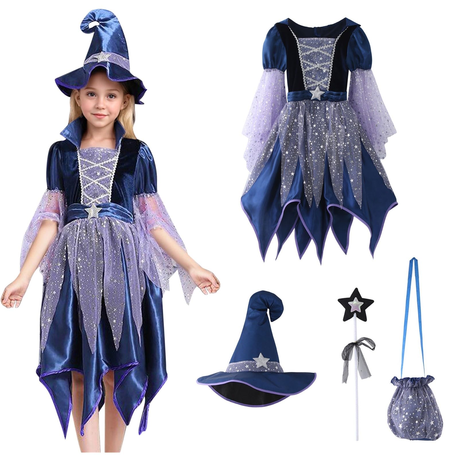 Abrakadabra! Verwandele deine Tochter in eine niedliche Hexe! Dieses komplett Set enthält alles: lila-schwarzes Kleid, Hexenhut, Zauberstab und Süßigkeitenbeutel. Aus weichem, kindgerechtem Material, bequem zu tragen. Perfekt für Halloween, Karneval, Kindergeburtstage oder Mottopartys. Mit den langen Ärmeln und dem Tüllrock fühlt sich jedes Mädchen wie eine echte Zauberin. In 5 verschiedenen Größen erhältlich - such einfach die passende aus! Ideal für 'Süßes oder Saures' oder die nächste Faschingsparty!