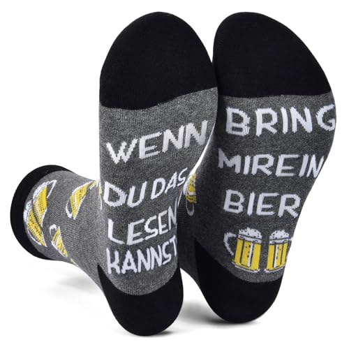 Prost mit den Füßen! Diese ulkigen Biersocken sind das perfekte Accessoire für jeden Bierfan. Jedes Paar hat unterschiedliche Motive auf linker und rechter Socke - total witzig! Aus weicher Baumwolle gefertigt, sind sie atmungsaktiv, dehnbar und behalten auch nach häufigem Waschen ihre Form. Die Universalgröße 36-44 passt den meisten Männern und Frauen. Perfekt fürs Oktoberfest, als Geburtstagsgeschenk, zu Weihnachten oder einfach für jeden Tag, der eine Portion Humor vertragen kann. Deine Freunde werden staunen, wenn sie die coolen Bierflaschen-Motive sehen! Egal ob im Biergarten, auf Festivals oder gemütlich daheim - mit diesen Socken bist du immer stylisch unterwegs. Das ideale Geschenk für jeden, der Bier liebt!