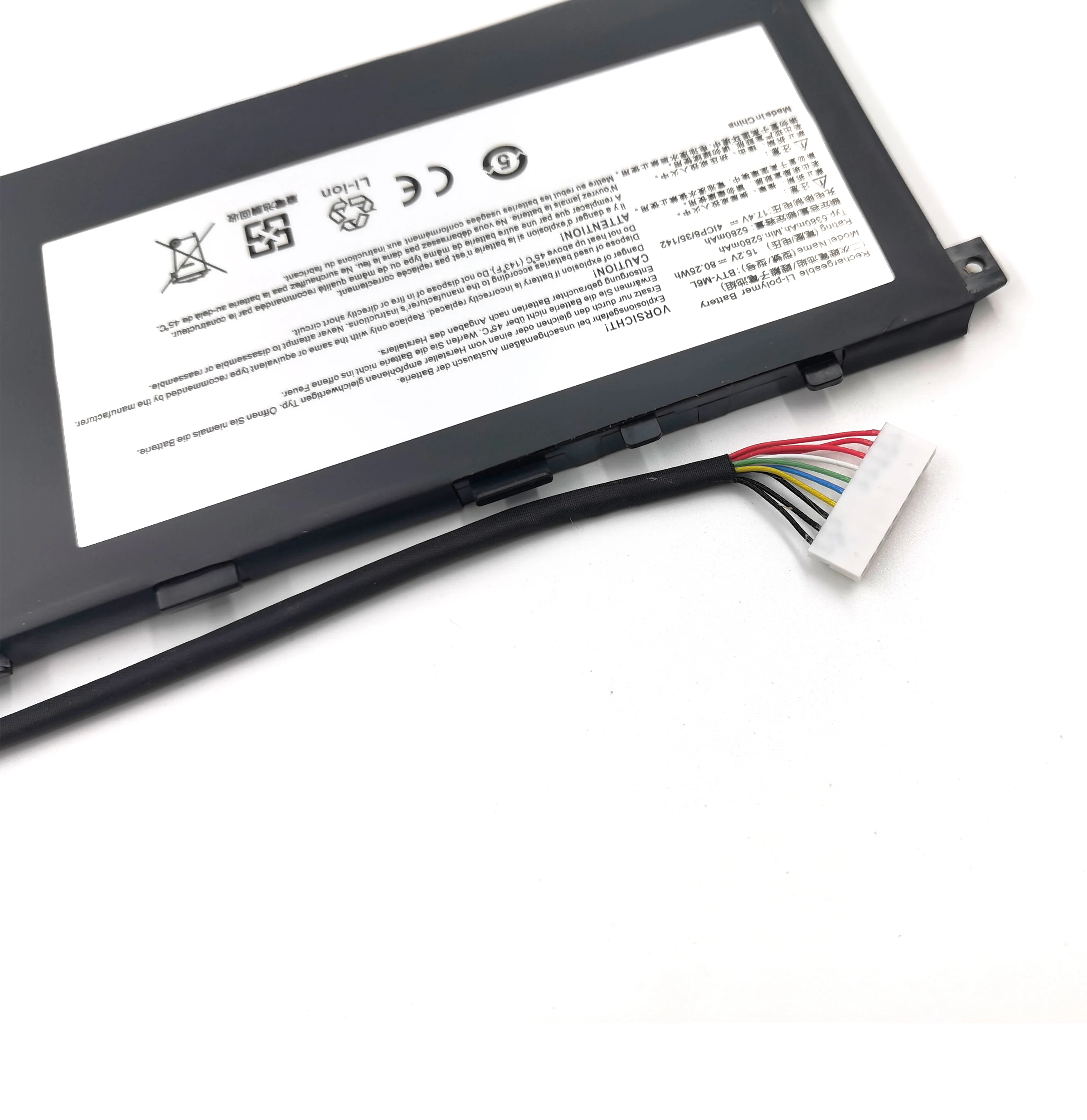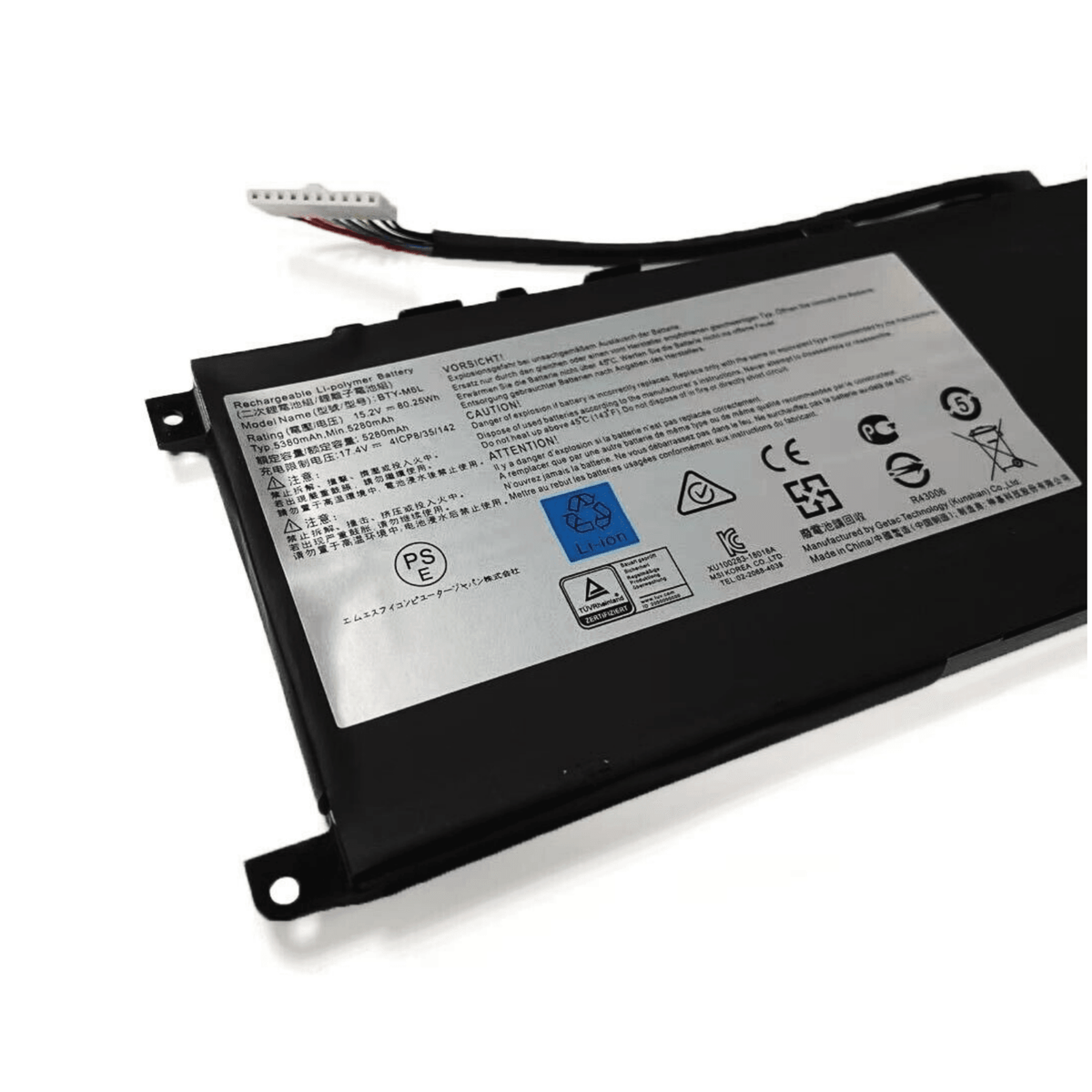 Servus! Dieser BTY-M6L Akku ist der richtige Ersatz für deinen MSI Laptop. Mit 15,2 V und 80,25 Wh (5380 mAh) liefert er dir wieder volle Power. Er passt zu vielen MSI Modellen: GS65 Stealth (8SE, 8SF, 8SG, 8RF, 9SD, 9SE, 9SF, 9SG), GS75 Stealth, PS63 Modern, P65 Creator, P75 Creator und GS60 Serie. Kompatible Teilenummern sind BTY-M6L, 0016Q2-019, 0016Q2-020 und 0016Q2-078. Der Akku ist brandneu, CE-/FCC-/RoHS-zertifiziert und damit sicher und getestet. Einfach einsetzen und dein Laptop ist wieder mobil! Perfekt, wenn der alte Akku schlapp macht oder du einfach länger unplugged arbeiten willst. Mit 12 Monaten Garantie und gutem Support – wenn was ist, melde dich einfach! Ein super Upgrade für alle, die unterwegs sind und sich auf ihren Laptop verlassen müssen. Einfach bestellen, einbauen und durchstarten!