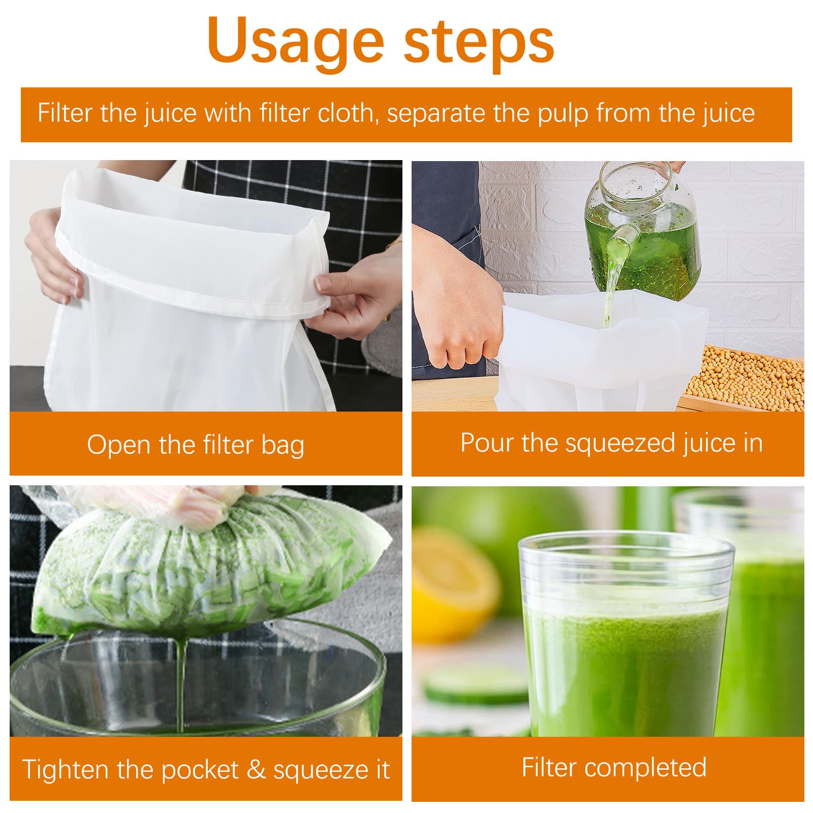 Selbermachen war noch nie so einfach! Diese 6 waschbaren Nussmilchbeutel sind dein neues Lieblings-Küchenutensil. Mit feiner Filtration für kristallklare Nussmilch, hausgemachten Käse, Obstsäfte und Kaffee. Maße: 30x28cm - perfekt für die Handhabung. Aus hochwertigem, lebensmittelechtem Material das immer wieder verwendet werden kann. Einfach reinigen und schnell trocknend. Perfekt für Veganer, Vegetarier und alle die Wert auf gesunde, selbstgemachte Lebensmittel ohne Zusatzstoffe legen. Schone die Umwelt und deinen Geldbeutel - mach deine Lieblingsgetränke einfach selbst!