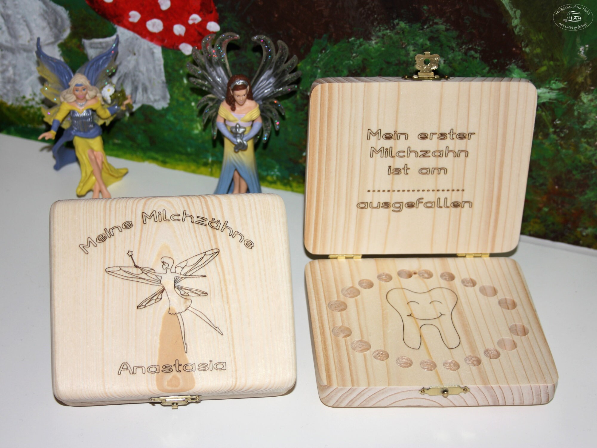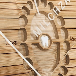 Der erste Wackelzahn ist etwas ganz Besonderes – und mit dieser personalisierbaren Milchzahnbox von sendmoments bewahrst du diese Erinnerung für immer auf! Die Holzbox (Innenmaße: 108x90x25 mm) lässt sich mit dem Namen deines Kindes individualisieren und bietet Platz für Milchzähne, Haarlocken, Fotos oder andere kleine Schätze. Hergestellt in Deutschland, ist sie ein einzigartiges und persönliches Geschenk zur Geburt, zum Geburtstag oder einfach so. Mit ihrem kindgerechten Design ist sie für Jungen und Mädchen gleichermaßen geeignet. Einfach in Amazon individualisieren, Text eingeben und eine bleibende Erinnerung schaffen – so macht Aufbewahren Spaß!