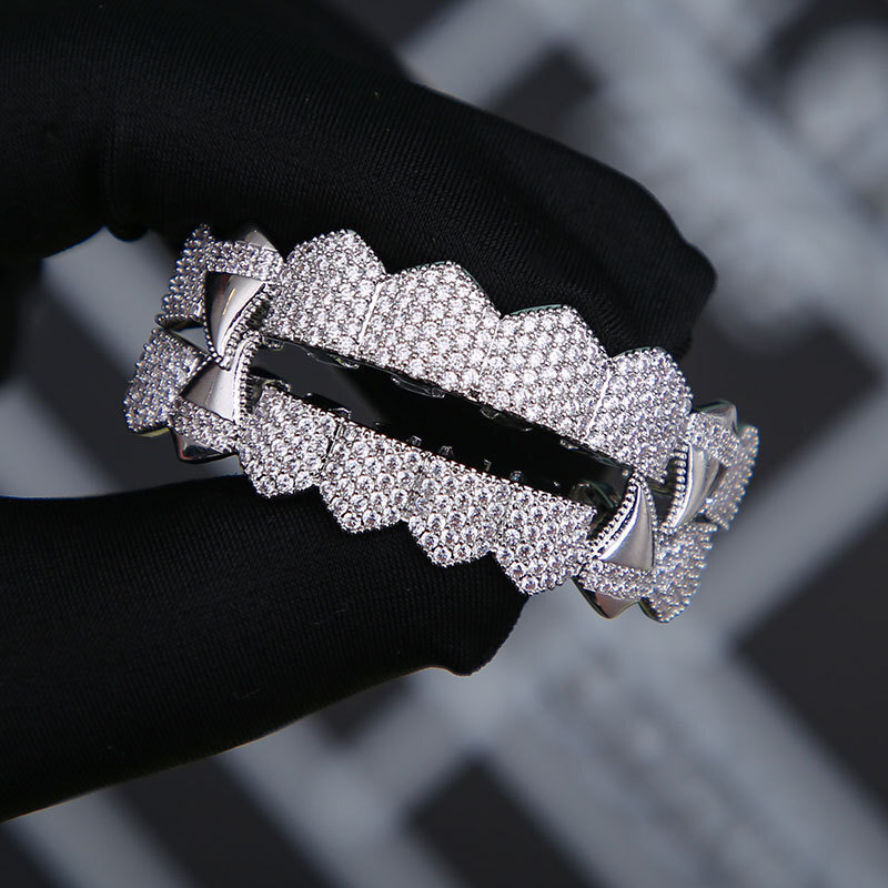 Ready to rock! Diese krassen 6-Zahn Grills in 18K Vergoldung bringen den echten Bling-Bling in Ihr Lächeln. Eine Größe passt (fast) allen - egal wie gerade oder krumm die Zähne sind. Die mitgelieferten Silikon-Formleisten machen's möglich! Perfekt für Partys, Clubs, Fotoshootings oder einfach um mal was Anderes auszuprobieren. Das Set enthält: 1x Oberkiefer-Grill (ca. 5x1,7 cm), 1x Unterkiefer-Grill (ca. 4x1,1 cm), 2x Silikon-Formleisten und 1x Pinzette für die perfekte Platzierung. Ob Halloween, Weihnachten, Hochzeit oder Abschlussball - mit diesen Grills sind Sie der Star! Achtung: Nicht für den dauerhaften Gebrauch geeignet. Einfach einsetzen, strahlen und wieder rausnehmen. Voll der Vibe!