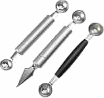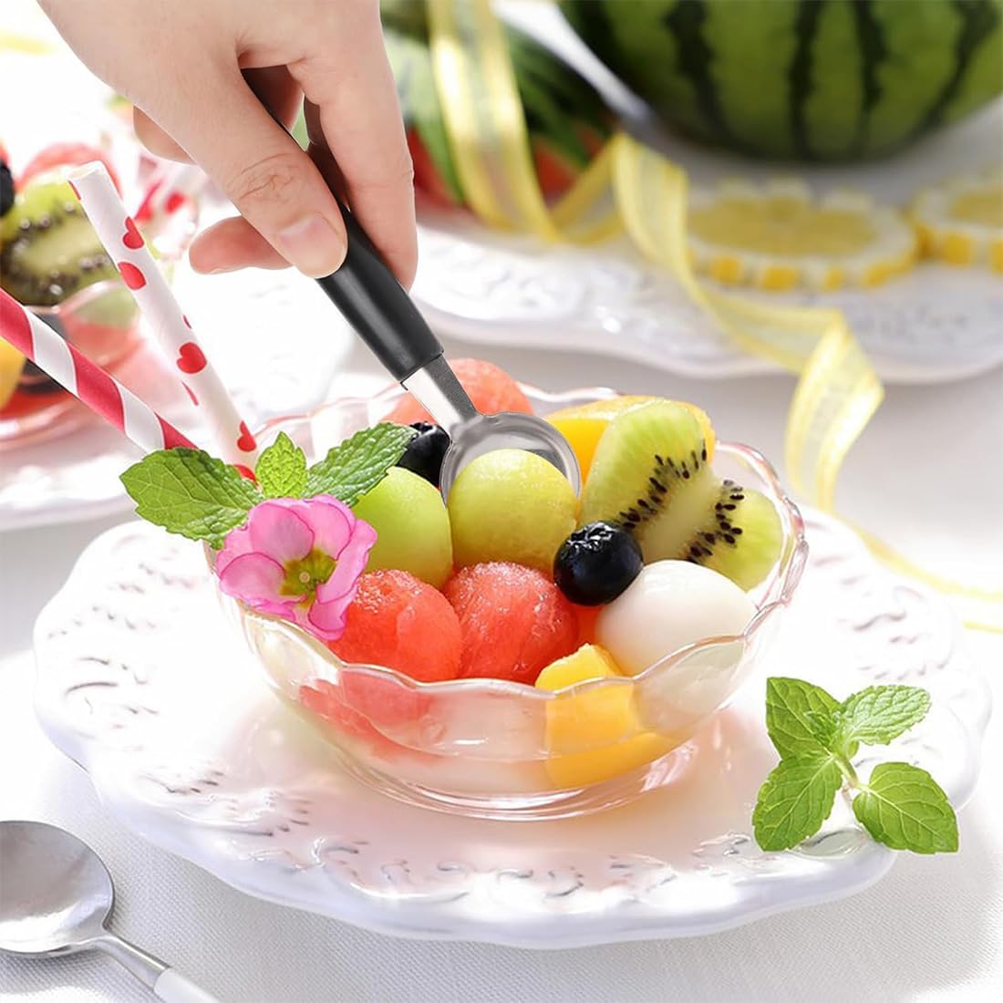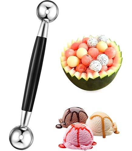 Mann, dieser doppelseitige Melonenausstecher ist einfach genial für alle Food-Lover! Aus hochwertigem Edelstahl gefertigt - rostfrei, langlebig und komplett unbedenklich für Lebensmittel. Mit zwei verschiedenen Größen: 3cm und 2,5cm Durchmesser, perfekt für große und kleine Obstkugeln. Die 18cm lange Stange gibt dir genug Hebelkraft für müheloses Portionieren. Die rutschfesten Griffe sorgen für sicheren Halt, auch mit nassen Händen. Perfekt nicht nur für Melonen, sondern auch für Drachenfrucht, Kartoffelpüree, Eis, Fleischbällchen oder sogar für Cupcakes und Schokolade. Das spezielle Design mit Ablauflöchern verhindert Überschwappen und die scharfen Edelstahlkanten schneiden mühelos durch jedes Obst. Einfach rein, drehen, raus - und schon hast du perfekte Kugeln für deinen Obstsalat oder als Deko. Macht jedes Gericht zum Hingucker! Einfach reinigen und ewig Freude daran haben.