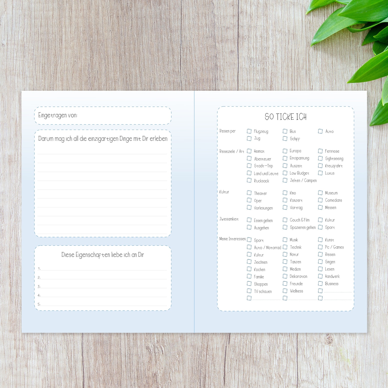Hey, ihr beiden! Dieses Bucket List Buch ist perfekt, um eure gemeinsamen Träume und Abenteuer festzuhalten. Im schicken DIN A5 Hardcover mit 52 Seiten dickem 170g Papier. Platz für 50 eurer verrücktesten Vorhaben - nicht nur einfach abhaken, sondern mit Datum, Ort, Begleitpersonen und ganz persönlichen Erinnerungen festhalten. Warum steht dieser Punkt auf eurer Liste? Wie war das Erlebnis? Alles kann dokumentiert werden. Mit Inspirationsseite für Ideen. Ob als Paar, beste Freunde oder Familie - schafft euch eure persönliche Erinnerungs-Schatztruhe! In Deutschland klimaneutral gedruckt und super stabil durch Fadenheftung.