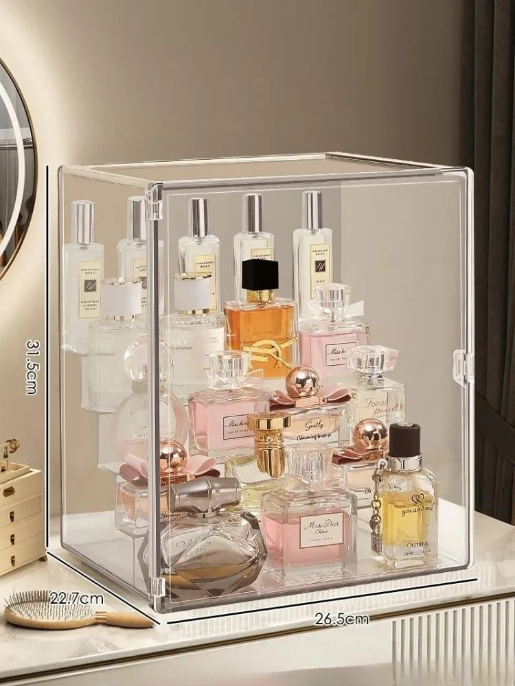 Präsentiere deine Parfümsammlung wie im Luxus-Department! Dieses elegante Acrylregal mit 30,5cm Breite bietet auf zwei Etagen Platz für deine liebsten Düfte. Die integrierte LED-Beleuchtung mit Fernbedienung verwandelt deine Sammlung in eine glamouröse Ausstellung - wählbare Farben sorgen für die perfekte Stimmung. Die kabellosen Lichter sind einfach zu installieren und bringen deine Parfümflakons perfekt zur Geltung. Aber nicht nur für Parfüm geeignet: Auch Kosmetik, Spielzeugfiguren, Sonnenbrillen oder Souvenirs kommen hier super zur Geltung. Das transparente Acryl ist kaum sichtbar und lässt den Fokus ganz auf deinen Schätzen liegen. Perfekt fürs Badezimmer, das Schlafzimmer oder die Vitrine. Ein tolles Geschenk für alle, die Wert auf Ordnung und ansprechende Präsentation legen. Ob zu Weihnachten, zum Geburtstag oder einfach so - dieses Regal macht immer eine gute Figur! Mit diesem Organizer findest du deine Lieblingsdüfte immer auf einen Blick und hast sie stilsicher inszeniert.