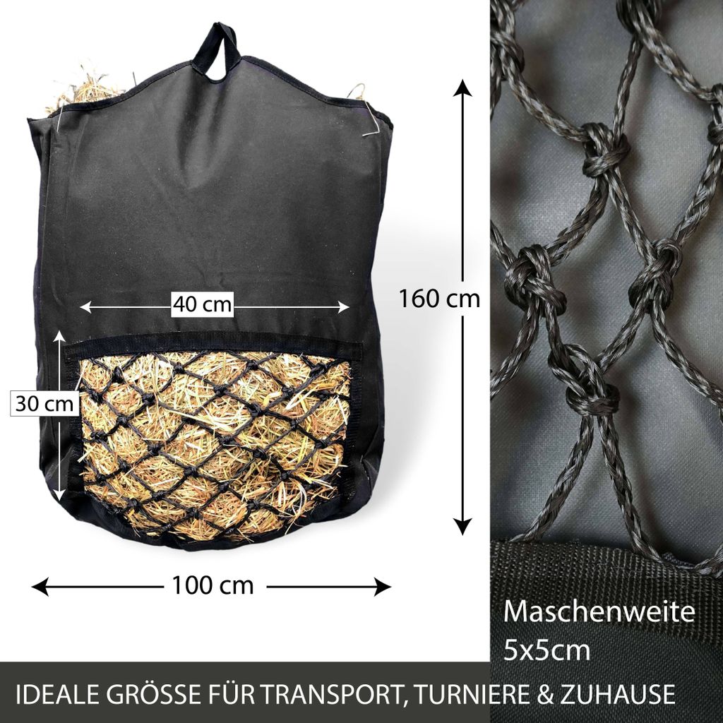 Dein Pferd wird's lieben! Dieser praktische Heusack von WALDHAUSEN macht die Fütterung gesünder und sauberer. Mit 12 Löchern (je ca. 8cm Durchmesser) fördert er langsames, pferdegerechtes Fressen - genau wie in der Natur. Der spezielle Netzboden ist das Highlight: Staub und Feuchtigkeit können einfach herausfallen, sodass dein Pferd weniger Heustaub einatmet. Das schont nicht nur die Atemwege, sondern reduziert auch Heuverschwendung. Mit 85 Litern Fassungsvermögen (ca. 4kg Heu) ist der Sack ideal für die tägliche Fütterung. Einfach zu befüllen und zu reinigen, universell einsetzbar und leicht zu befestigen. Für mehr Pferdegesundheit und weniger Sauerei in der Box oder auf der Weide. Dein Pferd wird beschäftigt sein und sich über das natürliche Fresserlebnis freuen!