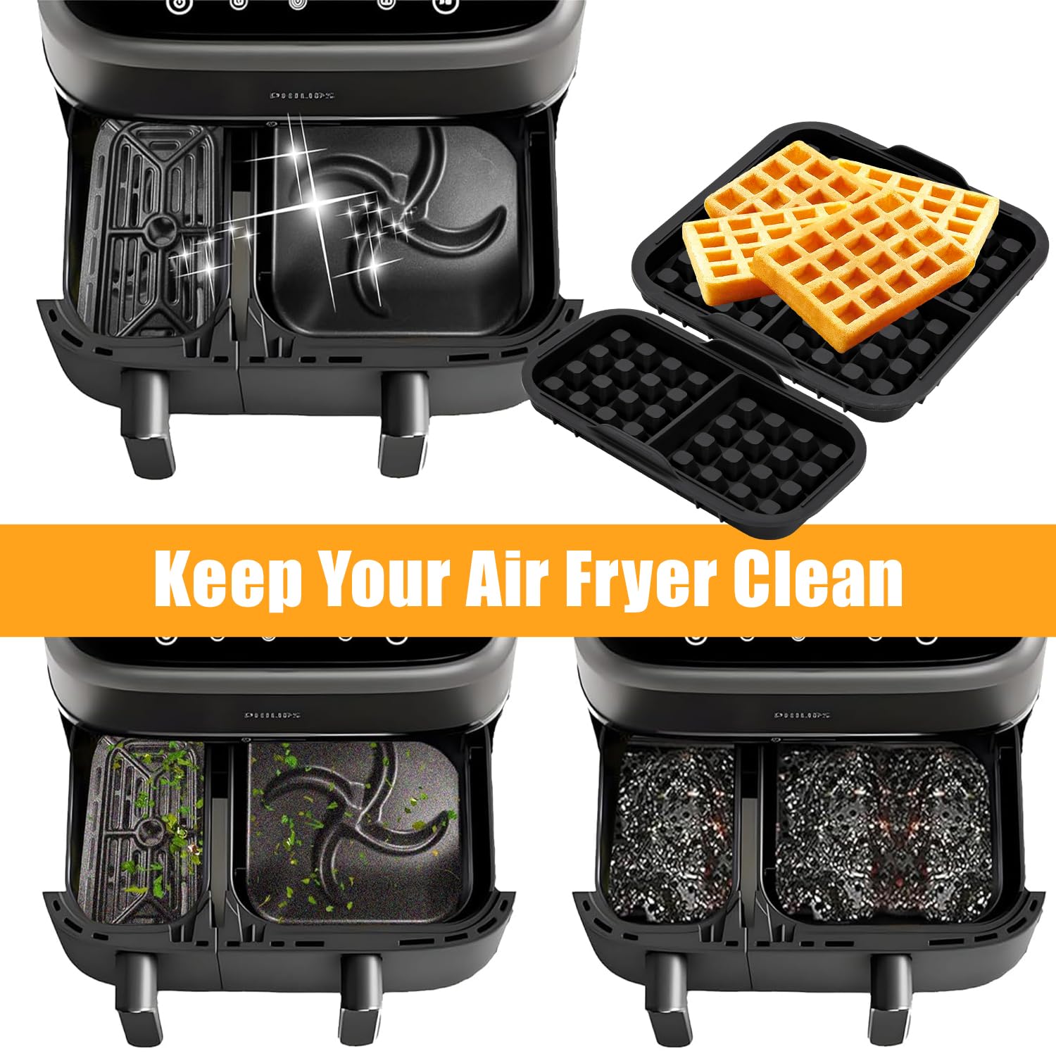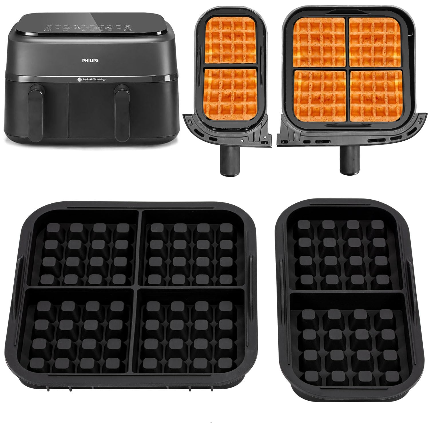 Waffeln aus der Heißluftfritteuse? Aber klar! Diese praktischen Silikoneinsätze verwandeln deinen Philips Airfryer Dual Basket in eine Waffelstation. Aus hitzebeständigem Silikon bis 230°C, mit Antihaftbeschichtung für leichtes Lösen. Perfekt für knusprige Waffeln, aber auch für Brownies, Mini-Kuchen und herzhafte Snacks. Einfach zu reinigen - spülmaschinenfest! Im 2er-Pack, sodass du verschiedene Leckereien parallel zubereiten kannst. Mach deine Airfryer noch vielseitiger und entdecke neue Kochmöglichkeiten!