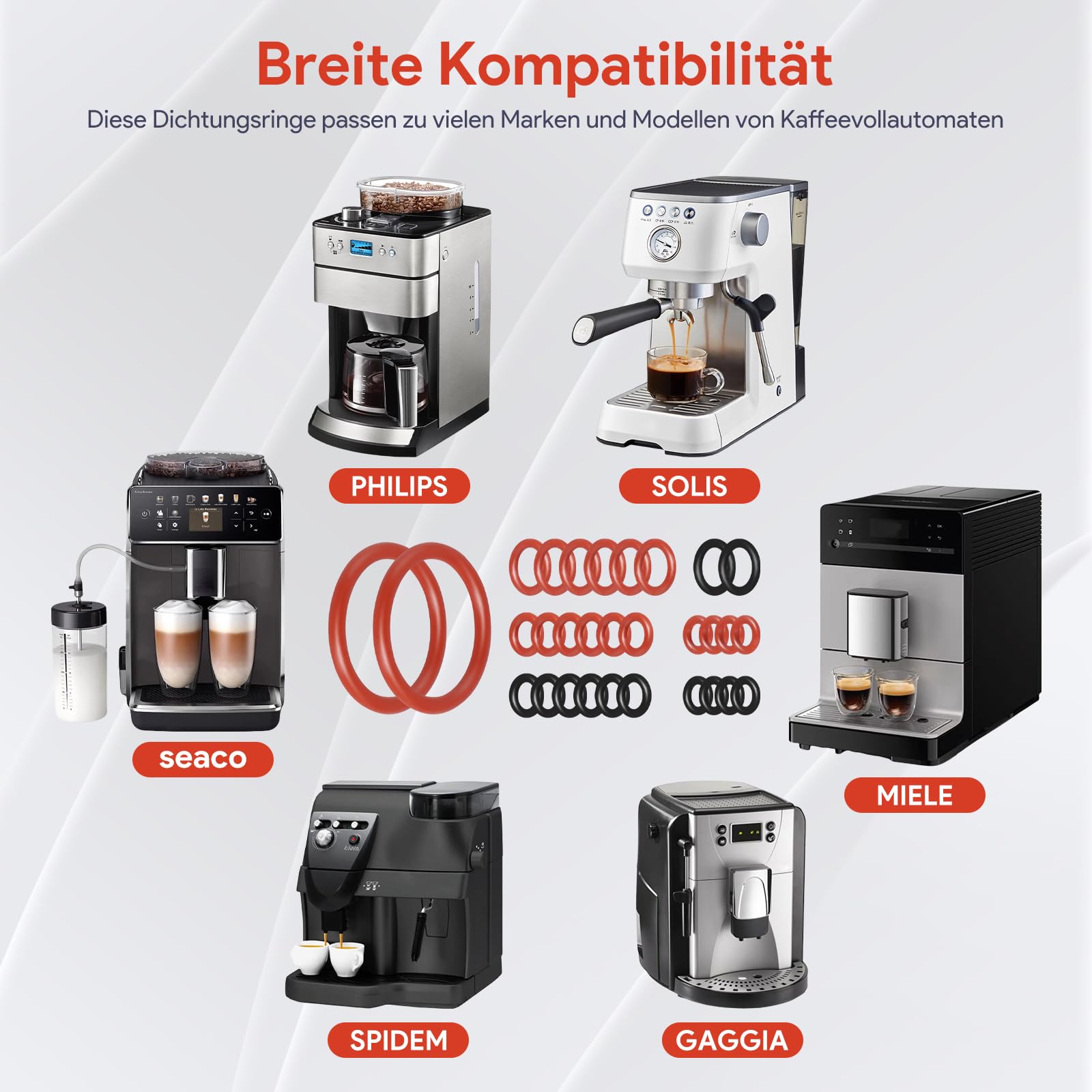 Läuft deine Kaffeemaschine nicht mehr richtig? Vielleicht sind die Dichtungen schuld! Dieses 20-teilige Set enthält alles, was du für die Wartung deines Philips, Saeco, Gaggia oder Spidem Kaffeevollautomaten brauchst. 15 hochwertige O-Ringe aus Silikon und EPDM für Brühgruppe, Supportventil, Dampfventil und Auslaufventil - plus 5 praktische Reinigungsbürsten für die gründliche Pflege. Alle Dichtungen sind lebensmittelecht, hitzebeständig und langlebig. Einfach die alten, porösen Dichtungen austauschen und schon läuft deine Maschine wieder wie neu! Kein teurer Werkstattbesuch nötig - das schaffst du selbst. Die Bürsten helfen dabei, Kaffeerückstände gründlich zu entfernen. So bekommst du wieder vollen Kaffeegenuss mit optimalem Druck und ohne lästige Lecks. Regelmäßige Wartung verlängert die Lebensdauer deiner Maschine enorm - mit diesem Set bist du bestens ausgestattet!