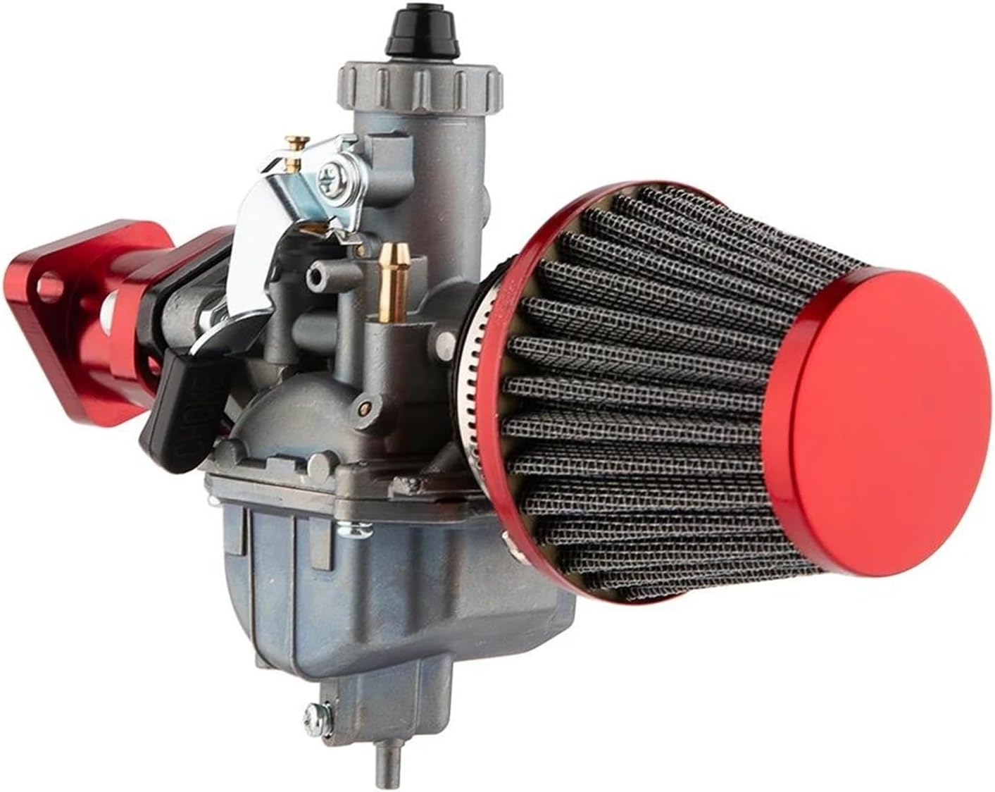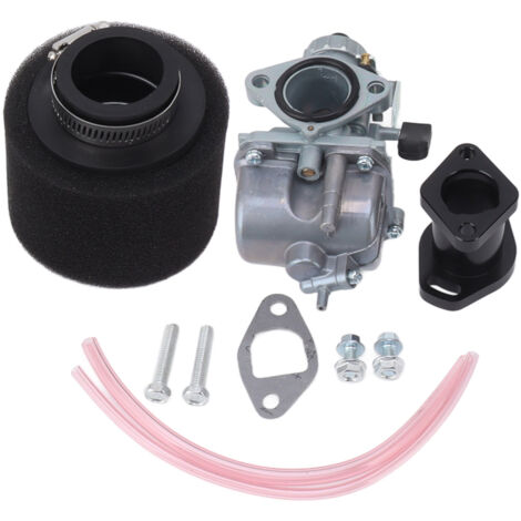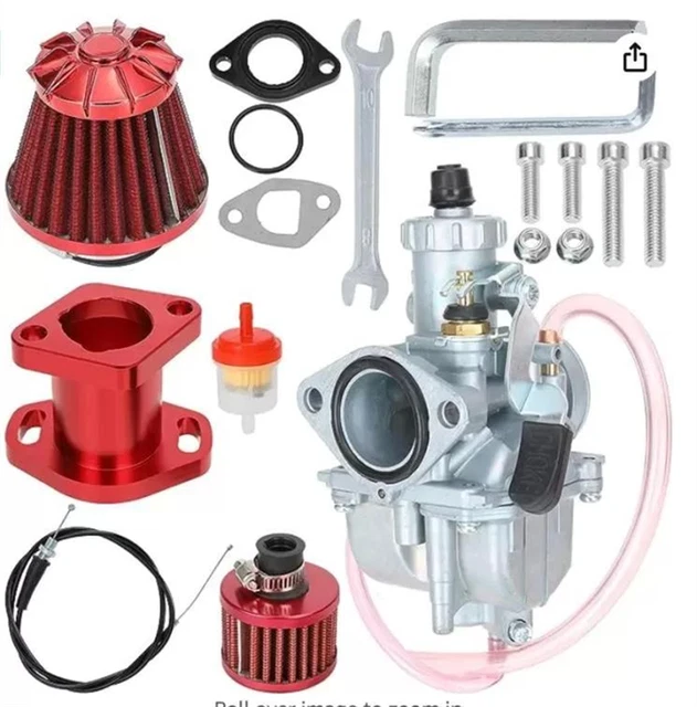 Alter, dieser VM22 Vergaser bringt deinen Motor richtig auf Touren! Perfekt für Predator 212cc und 196cc Motoren, aber auch für Coleman CT200U, BT200X Mini Bikes, KT196 Go Karts und GX160/GX200 Motoren. Die goldene Farbe sieht nicht nur cool aus, sondern ist auch korrosionsbeständig. Einfach zu installieren - keine weiteren Modifikationen nötig, passt einfach drauf. Du wirst sofort merken, wie die Leistung steigt! Der Motor läuft effizienter und gibt mehr Power ab. Mit 26mm Ansaughalterung und 48mm Bolzenlochabstand - genau die richtigen Maße. Der Luftfilterhalter hat 38mm, also Standard. Achtung: Mit Kabelchoke montieren, nicht vergessen! Das glatte Design schützt deine Hände vor scharfen Kanten. Aus Aluminium gefertigt, daher leicht und langlebig. Ob für Pit Bikes, Dirt Bikes, Monkey Bikes oder Quads - dieser Vergaser macht einfach jeden Motor besser. Wenn du dein Mini Bike oder Go Kart aufmotzen willst, ist das genau das richtige Teil!