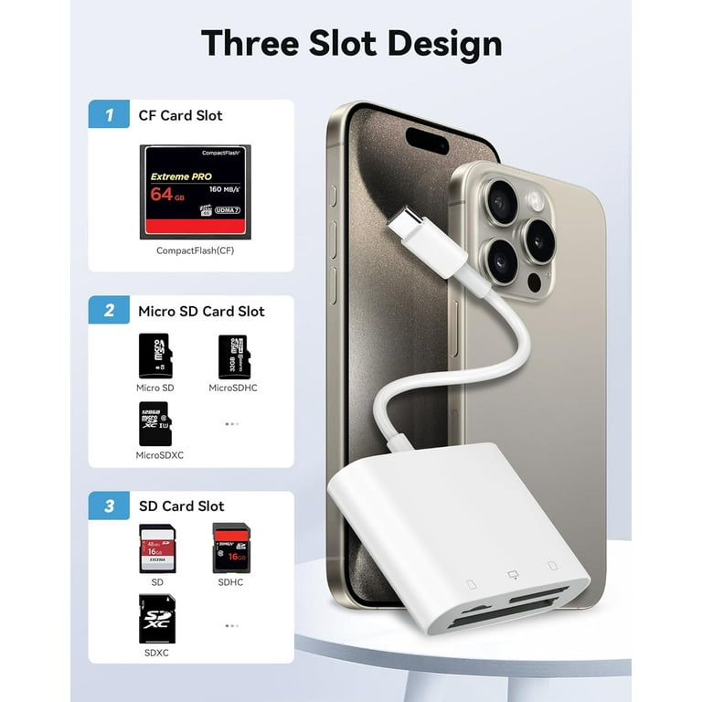 Fotos und Videos schnell übertragen? Mit diesem USB C Kartenleser kein Problem! Er hat zwei Steckplätze für SD und Micro SD Karten (SDHC/SDXC/etc.) - aber Achtung: Nicht beide gleichzeitig nutzen! Bis zu 256 GB Kapazität werden unterstützt (JPEG/RAW/H.264/MPEG-4). Die Übertragungsgeschwindigkeit von 20-30 MB/s ist super schnell - große Datenmengen sind in Sekunden übertragen. Besonders praktisch: Bidirektionaler Transfer! Du kannst nicht nur von der Karte aufs Handy übertragen, sondern auch umgekehrt. Einfach einstecken und loslegen - keine extra App nötig. Kompatibel mit iPhone 15 Serie, iPad Pro/Air, Android-Geräten mit USB-C und OTG-Funktion. Das schlanke, leichte Design passt in jede Tasche - ideal für unterwegs, Reisen oder Fotoshootings. Für iOS 13 und neuer gibt's bidirektionalen Transfer über die Dateien-App, für iOS 9.2-12.4 geht's einseitig über die Fotos-App. Ein Must-Have für Fotografen, Reisende und alle, die schnell auf ihre Daten zugreifen wollen!