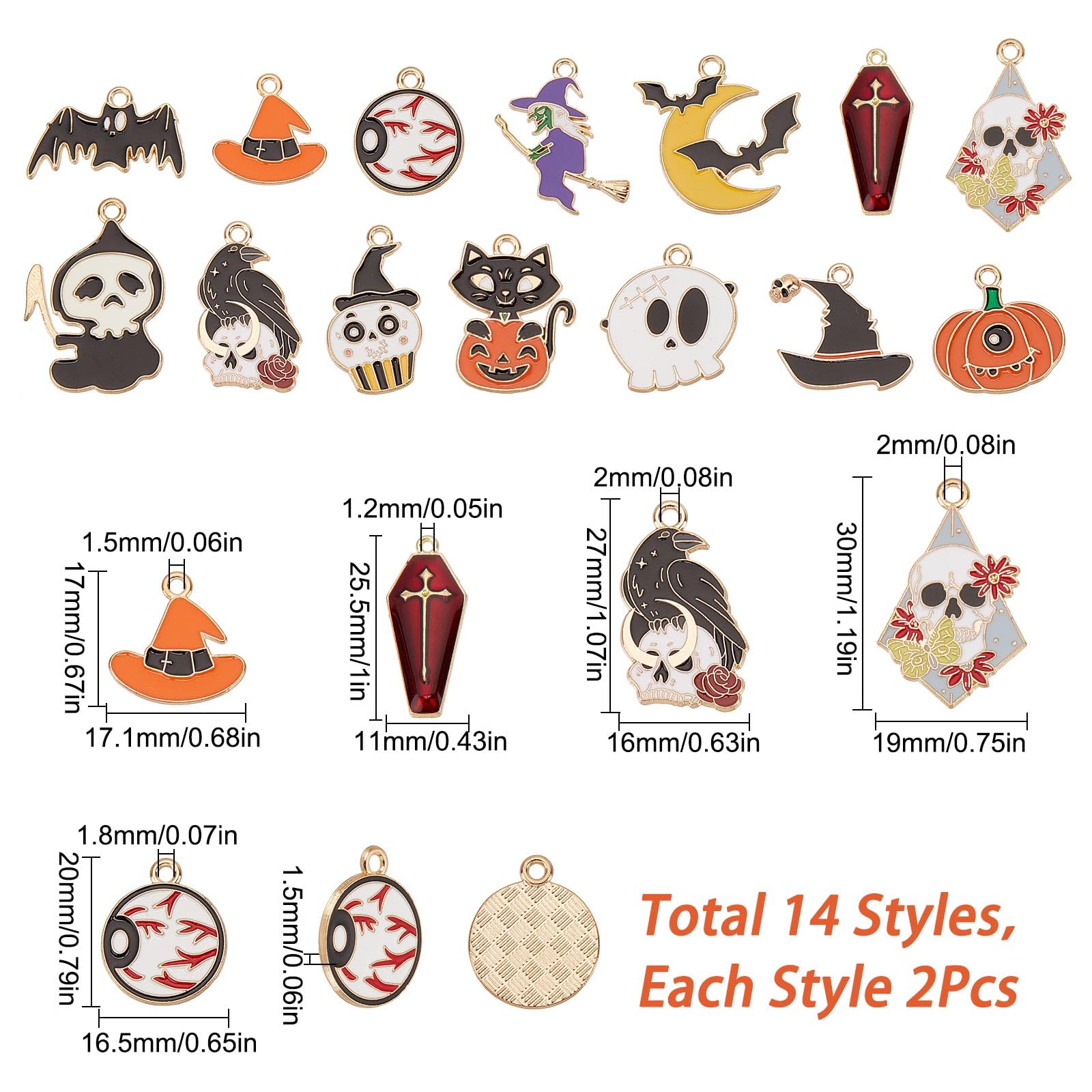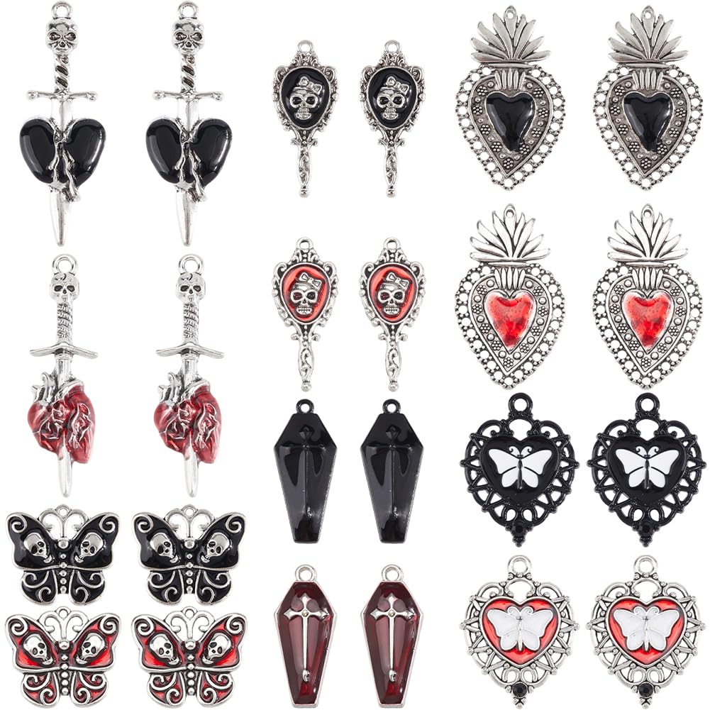 Oh yeah, Halloween-Fans aufgepasst! Dieses Set mit 20 gruseligen Charms ist perfekt für eure DIY-Schmuckprojekte. Enthalten sind 10 verschiedene Designs - je 2x Fledermäuse, Monde, Spinnen, Gothic-Herzen und mehr. Aus hochwertiger Metall-Legierung, die nicht so schnell anläuft. Super für Armbänder, Halsketten, Ohrringe oder Schlüsselanhänger. Die glatten Kanten verhaken sich nicht und die polierte Oberfläche sieht einfach klasse aus. Perfekt für Halloween-Partys, Kostüme oder einfach um der Alltagsmode eine düstere Note zu verleihen. Auch toll als Geschenk für Grusel-Fans oder Schmuckbastler. Mit der kleinen Öse an jedem Charm einfach an Ketten oder Bändern befestigen - schon hast du dein persönliches Halloween-Accessoire!