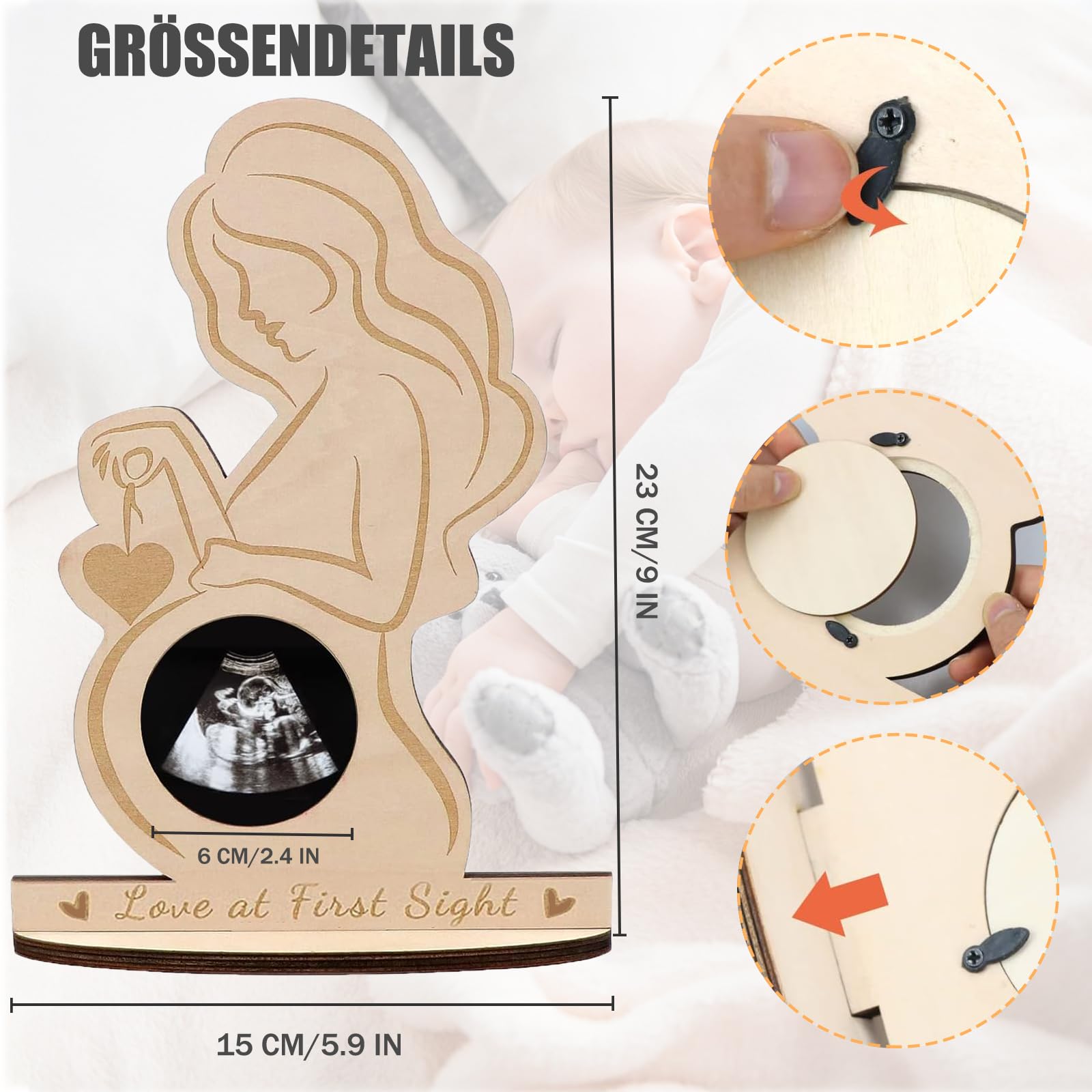 BHIPKOT Ultraschall Bilderrahmen - Holz, Für Schwangerschaftsfotos - Baby's Erstes Foto Display