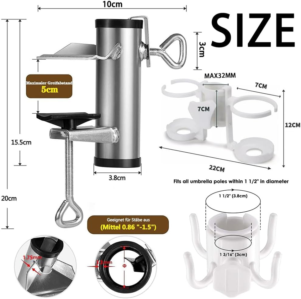 Hey Angler, dieser Schirmhalter für euren Angelstuhl ist ein echter Lebensretter! Endlich keine nassen Füße mehr bei plötzlichen Regenschauern und kein Sonnenbrand mehr bei strahlendem Sonnenschein. Aus hochwertiger Aluminiumlegierung gefertigt - total rostfrei und langlebig. Passt für Schirmstangen mit 20-30 mm Durchmesser und für Angelstühle mit 23-27 mm Durchmesser. Das 360° drehbare Design ist der Hammer - ihr könnt den Schirm genau dahin ausrichten, wo ihr ihn braucht. Und das abnehmbare Design ist super praktisch: Einfach zusammenschrauben, bei Bedarf montieren und nach dem Angeln wieder platzsparend verstauen. Wiegt nur 100g - also kein zusätzliches Gewicht das euch belastet. Befreit eure Hände und ihr könnt euch voll aufs Angeln konzentrieren. Egal ob am See, Fluss oder Meer - damit seid ihr für jedes Wetter gewappnet! Die Montage ist total simpel und benötigt kein Spezialwerkzeug. Einfach ein echter Game-Changer für alle Angelbegeisterten! Macht das Angeln einfach entspannter und komfortabler.