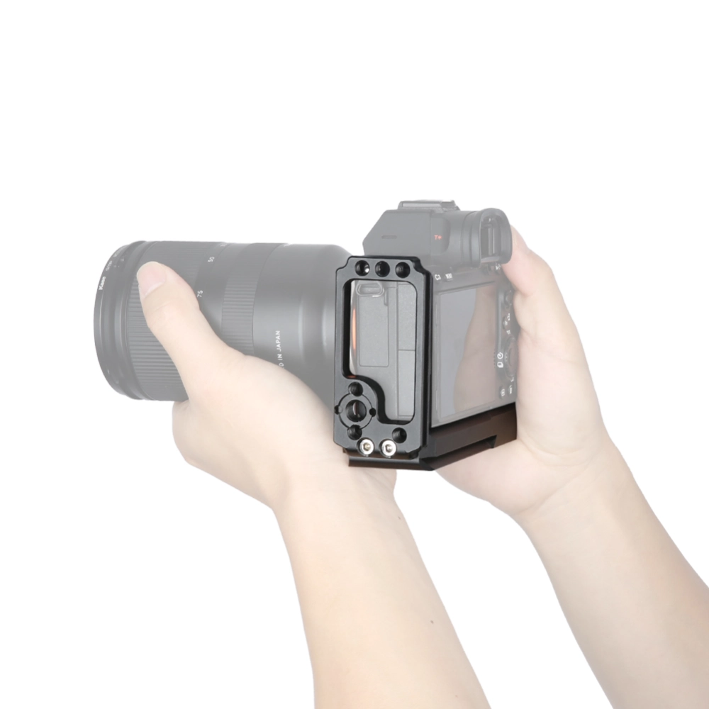 Moin, du filmst mit einer Sony A7III, A7RIII oder ähnlichen Modellen? Dann ist dieser Camera Cage genau dein Ding! Der robuste Alu-Käfig schützt deine wertvolle Kamera vor Kratzern und Stößen. Das coole dabei: Du hast weiterhin vollen Zugriff auf alle Anschlüsse und Tasten. Mit dabei sind Cold Shoe für Mikro oder Monitor, ARRI Rosette für den Handgriff und HDMI-Clamp zum sicheren Befestigen deines Kabels. Alles aus leichter Aluminiumlegierung - robust aber nicht zu schwer. Perfekt für Filmprojekte, Dokumentationen oder wenn du einfach mehr Flexibilität beim Aufbau brauchst. Einfach montieren und losfilmen!