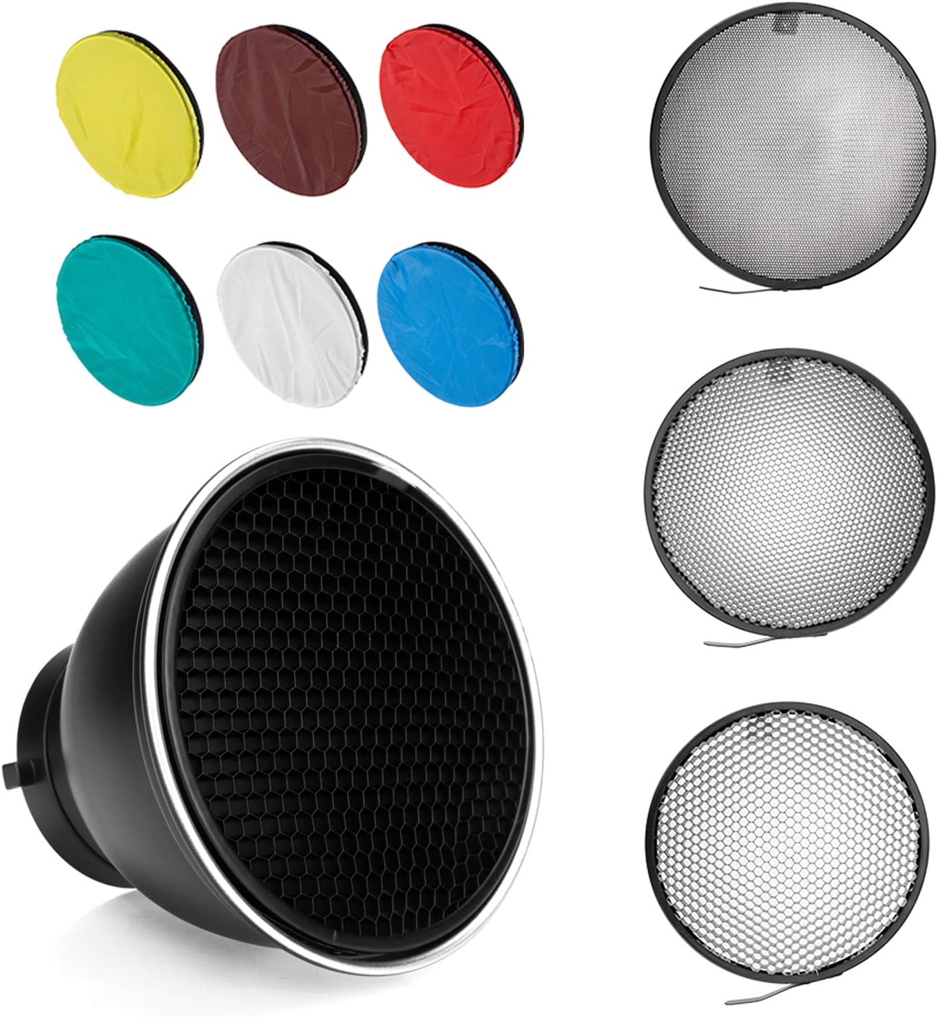 Hey Fotografen, dieses Wabenraster ist ja mal richtig praktisch für Studio-Aufnahmen! Aus Aluminium gefertigt - leicht aber stabil. Erhältlich in verschiedenen Winkeln von 10 bis 60 Grad - für perfekte Lichtkontrolle! Mit 17cm Innendurchmesser passt es auf die meisten Studioblitze. Erzeugt schöne Spot-Effekte und gibt deinen Fotos mehr Tiefe. Super für Porträtaufnahmen oder kreative Lichtsetups! Einfach auf den Blitz stecken und schon hast du kontrolliertes Licht. Macht aus hartem Blitzlicht weiche, gezielte Beleuchtung. Perfekt für Profis und ambitionierte Hobby-Fotografen! Einfach anbringen und bessere Fotos machen - so einfach kann Lichtführung sein!
