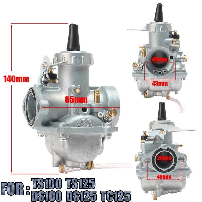 Deine Suzuki TS125 läuft nicht mehr rund? Dieser Vergaser bringt sie zurück auf Trab! Speziell für Suzuki TS125, TS100, DS125 und ähnliche Modelle entwickelt. Aus Zinklegierung für maximale Haltbarkeit - kein Rost, kein Ärger. Die Messingdüsen garantieren präzisen Kraftstofffluss und verhindern lästiges Abwürgen. Einbau ist super einfach - passt perfekt auf den originalen Ansaugkrümmer, keine Modifikationen nötig. Mit 48mm Bolzenabstand und den passenden Anschlussmaßen ist er der ideale Direct-Replacement. Verbessert die Leistung und spart sogar noch Kraftstoff. Ob für Offroad, Motocross oder Straße - dein Motor wird es dir danken! Endlich wieder Spaß am Fahren!