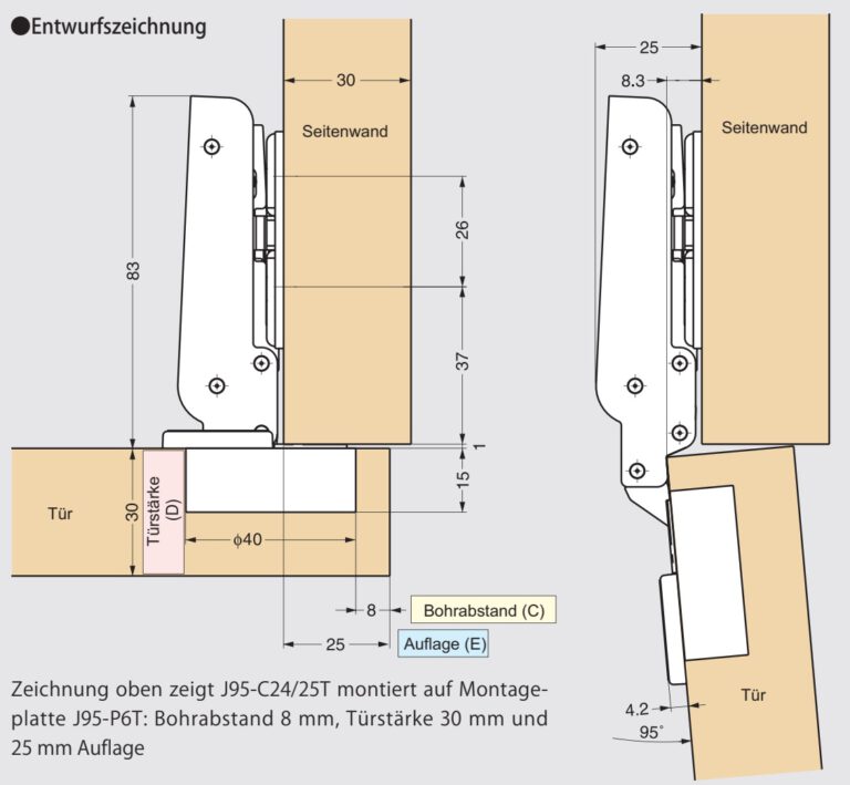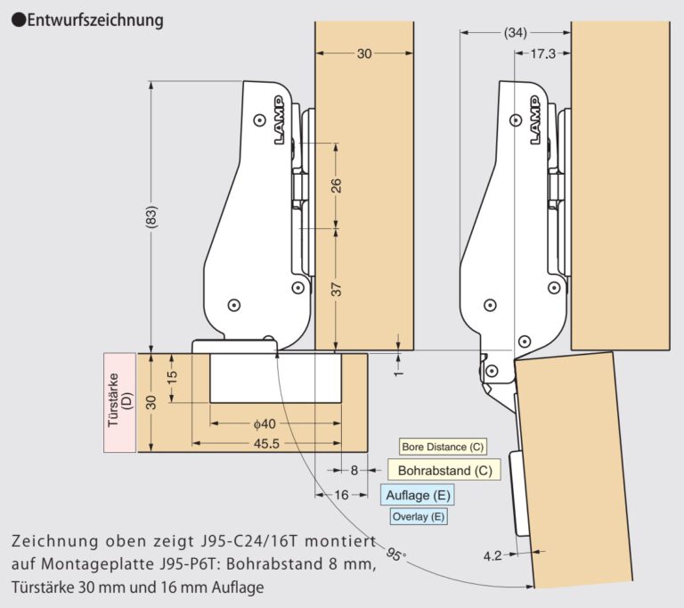Schwere Schranktüren? Diese Scharniere von LAMP halten bis zu 25 kg pro Tür! Mit der Klick-Montage geht's ratzfatz - einfach einrasten und fertig. Die Topfbänder haben 40 mm Durchmesser und sind aus robustem Metall. Die Zuhaltung sorgt dafür, dass die Türen auch wirklich zu bleiben. Perfekt für große Schränke, Küchen oder Sideboards. Bei nem 90 cm breiten Türblatt empfehlen wir 3 Scharniere, dann halten die sogar 40 kg! Made in Japan, Qualität, auf die du dich verlassen kannst.