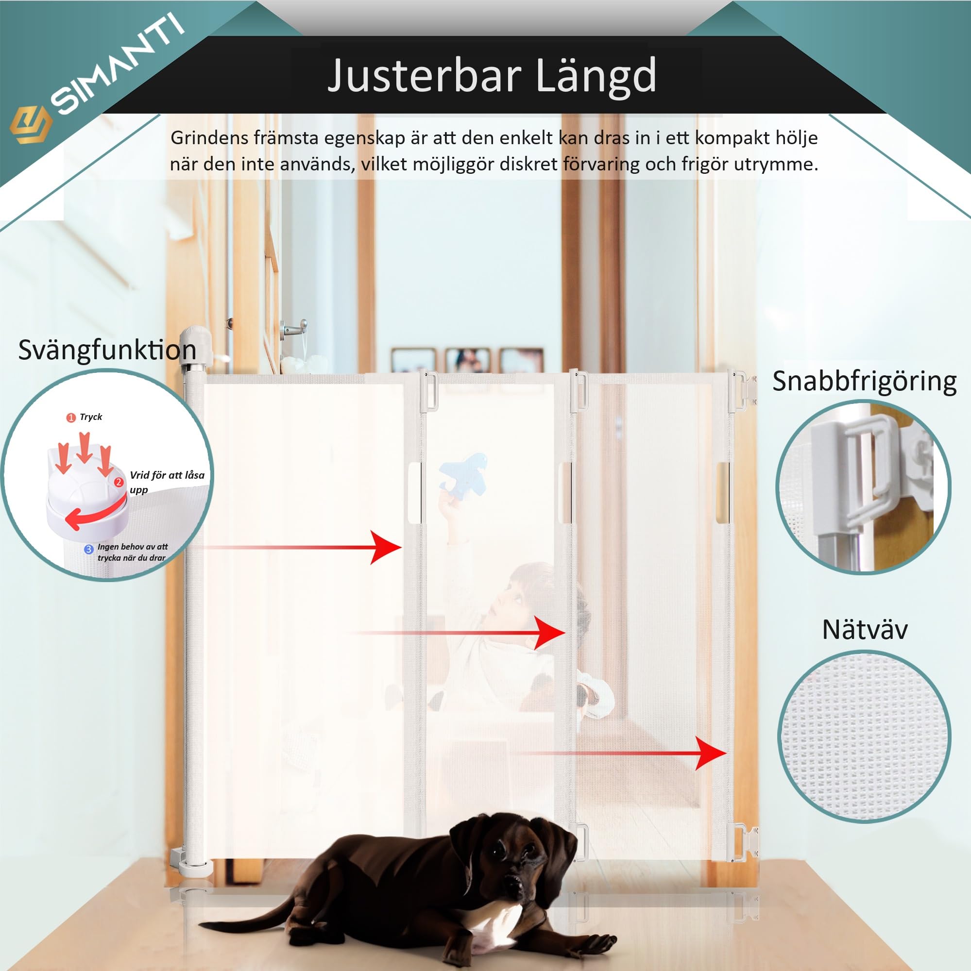 Damit deine Haustiere und Kinder sicher sind! Dieses ausziehbare Hundegitter lässt sich flexibel in Türrahmen oder vor Treppen installieren. Erhältlich in zwei Breiten: ca. 50cm oder 58cm, bei einer Höhe von 125cm. Aus Aluminium und ABS gefertigt - stabil und bissfest. Die teleskopierbare Konstruktion passt sich verschiedenen Öffnungen an und wird werkzeugfrei mit Haken befestigt. Perfekt für Türen, Korridore, Küchen oder Treppen. Verhindert, dass Hunde, Welpen oder Kleinkinder in verbotene Bereiche gelangen. Leicht zu montieren und platzsparend zu verstauen. Ideal für Mehrfamilienhäuser mit Treppen oder um bestimmte Zimmer abzugrenzen. Sorgenfrei, auch wenn du mal nicht hinschauen kannst!
