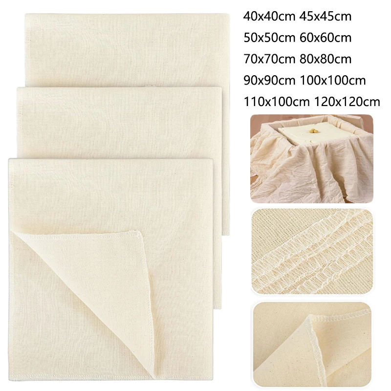 Dieses vielseitige Käsetuch ist der heimliche Star jeder Küche! Aus 100% ungebleichter Baumwolle gefertigt, ist es super saugstark und langlebig. Mit den großen 120x120cm hast du genug Platz für alle möglichen Küchenprojekte. Ob du Tofu selber machst, Joghurt siebst, Nussmilch filterst oder geklärte Butter herstellst - dieses Tuch meistert alles! Das eng gewebte Material hält auch feinste Partikel zurück, ohne zu reißen. Einfach nach Gebrauch mit warmem Wasser ausspülen und trocknen lassen - schon ist es wieder einsatzbereit. Du kannst es auch zuschneiden, wenn du kleinere Stücke brauchst. Ohne chemische Behandlung, geschmacksneutral und absolut lebensmittelecht. Perfekt für alle, die gerne selber machen - ob veganer Käse, pflanzliche Drinks oder traditionelle Milchprodukte. Ein Küchenhelfer, den man immer wieder verwenden kann und der keine schädlichen Chemikalien abgibt. Ökologisch und praktisch!