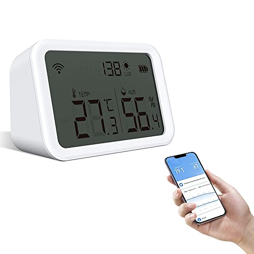 Dieser smarte Sensor macht dein Zuhause zum Smart Home! Misst präzise Temperatur (±1°C) und Luftfeuchtigkeit (±5% RH) und überträgt die Daten per ZigBee an deine Tuya oder Smart Life App. Mit 45m Reichweite und nur 45uA Standby-Stromverbrauch ist er extrem energieeffizient. Misst von -10°C bis 60°C und 1-95% Luftfeuchtigkeit - also für innen und außen geeignet. Perfekt für Gewächshäuser, Wohnräume oder das Babyzimmer. Einfach per USB oder AA-Batterie betreiben, in die App einbinden und schon hast du immer die aktuellen Werte im Blick. Sprachabfrage über kompatible Lautsprecher möglich!