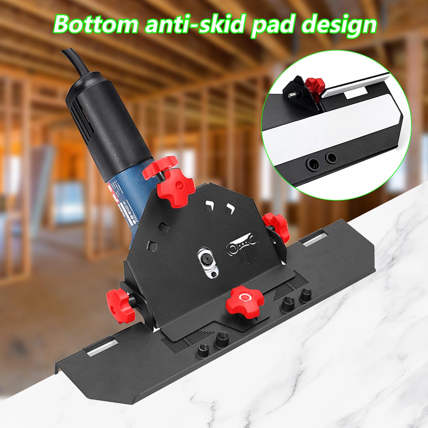 Mit diesem Anfasaufsatz von DEDRA machst du aus deinem Winkelschleifer eine präzise Fliesenschneidmaschine! Perfekt für 45-Grad-Schnitte an Fliesen, Stahl und anderen Materialien. Passt auf 115mm und 125mm Winkelschleifer - also auf die meisten Modelle. Die Schnitttiefe lässt sich super genau einstellen und der Winkel bleibt stabil, nichts verrutscht. Besonders praktisch: Der Staubanschluss! Schließ einfach deinen Staubsauger an und du hast kaum Dreck. Werkzeuglose Einstellung mit Flügelmuttern - kein langes Rumgesuche mit dem Schlüssel. Aus robustem Stahl gebaut, hält ewig. Für Seitenschnitte drehbar und mit vier Befestigungspunkten für zusätzliche Griffe. Im Set sind der Aufsatz, Einstellschrauben und ein Reduzierstück für verschiedene Staubsauger-Ansätze dabei. Achtung: Der Winkelschleifer selbst ist nicht inklusive! Ob Profi oder ambitionierter Heimwerker - für saubere Gehrungen ist das Teil unschlagbar!