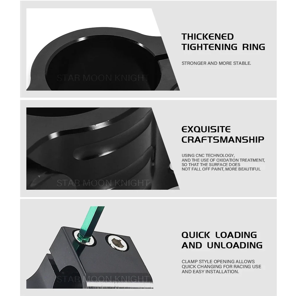 Bring deine Yamaha auf Rennniveau! Diese CNC-gefrasten Clip-On Lenker aus 6061 Aluminium sind ein echtes Upgrade. Mit 50mm Klemmdurchmesser passen sie perfekt für YZF R1, R6, R7, R3, R25 und andere Modelle von 2015-2024. Superleicht aber mega-stabil - genau das, was du für gute Straßenlage und präzise Kurvenfahrt brauchst. Das coole Feature: Die Lenkerrohre sind abnehmbar! Bei nem Sturz musst du nicht gleich den ganzen Lenker tausen. Die Edelstahl-Klemmen halten bombenfest und die schwarze Optik sieht einfach sportlich aus. Jedes Set enthält natürlich beide Seiten (rechts & links). Einfach montieren - auch wenn keine Anleitung dabei ist, kriegst du das hin. Mach aus deiner Yamaha eine echte Rennmaschine!