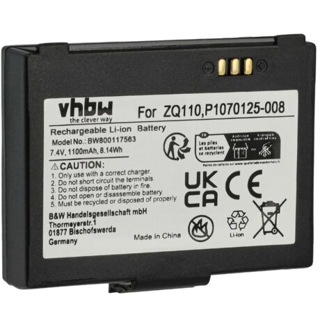 Hey, dieser vhbw Akku ist die perfekte Lösung für deinen Zebra Drucker! Mit 4400mAh Kapazität und 7,4V Spannung hast du lange Laufzeit für deinen mobilen Drucker. Kompatibel mit Zebra ZQ630 und QLN420 Modellen. Ersetzt die Original-Akkus BTRY-MPP-68MA1-01, P1040687 und P1050667-016. Der Li-Ion Akku hat keinen Memory-Effekt - du kannst ihn also jederzeit aufladen, ohne die Leistung zu beeinträchtigen. Mit 32,56 Wh Nennenergie sorgt er für zuverlässige Leistung. Einfach in den Drucker einsetzen und mit dem originalen oder kompatiblen Ladegerät aufladen. vhbw steht für Qualität - alle Sicherheitsstandards werden eingehalten und jede Akkuzelle wird geprüft. So verlängerst du die Lebensdauer deines Druckers und hast immer genug Power für unterwegs. Kein Ärger mehr mit schwachen Akkus - mit diesem Ersatzakku druckst du einfach drauflos!