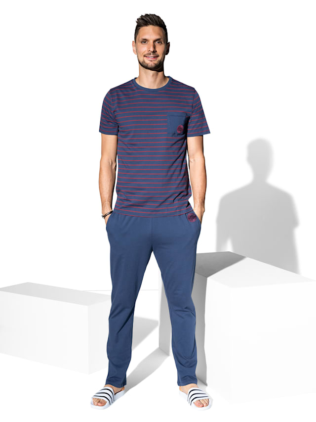 Mia san mia - auch im Schlaf! Dieser offizielle FC Bayern München Schlafanzug ist perfekt für alle echten Fans. In klassischem Navy-Blau mit gesticktem Logo - da weiß jeder, wo deine Fußball-Liebe hingeht. Aus 100% Biobaumwolle, super weich und angenehm auf der Haut. Normale Passform, nicht zu eng, nicht zu weit - einfach perfekt zum Schlafen und Relaxen. Ob nach dem Spiel, zum Übernachten oder einfach nur gemütlich auf dem Sofa - mit diesem Pyjama zeigst du deine Bayern-Treue rund um die Uhr. Ein Muss für jeden Rekordmeister-Fan! Einfach anziehen und träumen - vielleicht ja vom nächsten Triple!