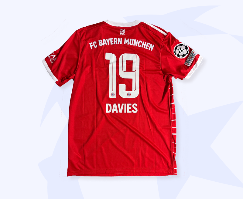 Mia san Mia! Dieses offizielle FC Bayern T-Shirt mit Alphonso Davies Aufdruck ist perfekt für echte Fans. Auf der Vorderseite das FCB Logo mit Rückennummer, auf der Rückseite 'Davies 19'.