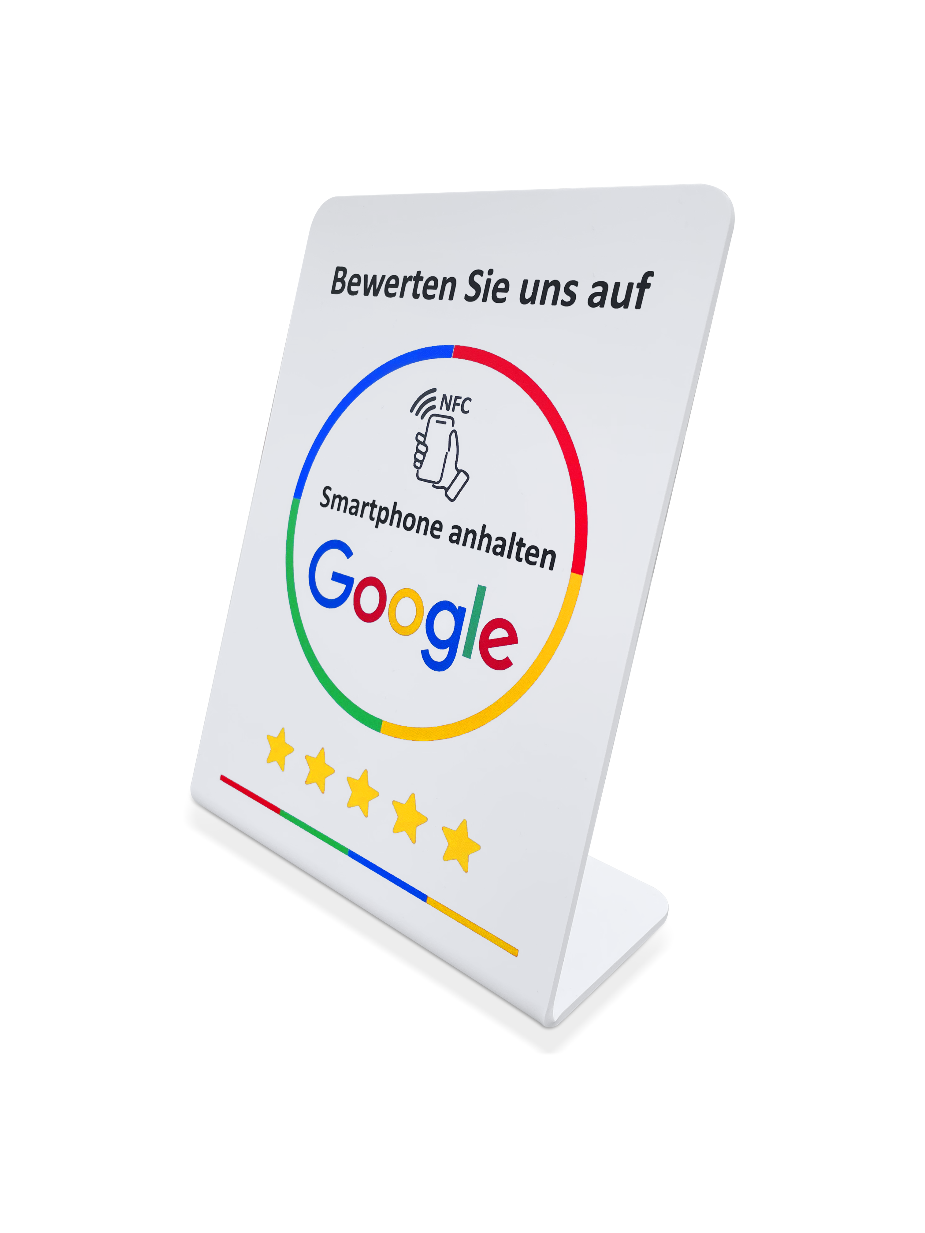 Mach es deinen Kunden leicht, Bewertungen zu hinterlassen! Dieser stylische NFC Aufsteller mit integriertem QR-Code leitet deine Kunden direkt zu deiner Google-Bewertungsseite. Einfach Smartphone darüber halten oder QR-Code scannen - schon können sie ihre Meinung teilen. Komplett DSGVO-konform mit deutschen Servern, keine Datenspeicherung. Perfekt für Restaurants, Cafés, Läden, Hotels oder Praxen. Das moderne Design fügt sich dekorativ in jede Umgebung ein. Sofort einsatzbereit - kein Einrichtungsaufwand nötig. So sammelst du authentische, zeitnahe Bewertungen und stärkst deine Online-Präsenz. Deine Kunden bewerten direkt nach dem Besuch, wenn der Eindruck noch frisch ist. Ein unverzichtbares Tool für jedes Unternehmen, das seine Sichtbarkeit verbessern möchte!