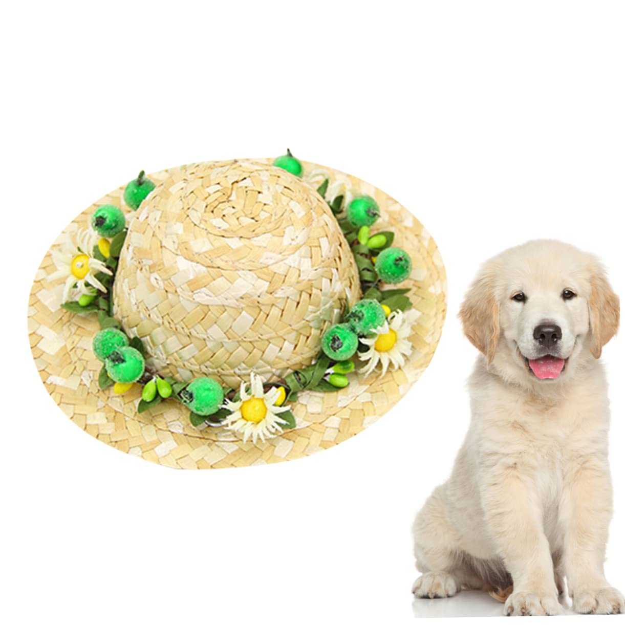 Dein Hund wird zum Strand-Star! Dieser niedliche Mini-Strohhut im Hawaii-Style ist perfekt für kleine Hunde und Katzen. Mit dem süßen Blumen-Stirnband sieht dein Liebling einfach umwerfend aus! Die verstellbaren Träger machen das An- und Ausziehen super einfach - kein Stress für dich oder dein Tier. Aus bequemem Polyester und Stroh gefertigt, schützt der Hut dein Haustier vor der heißen Sonne. Und das Beste: Er ist maschinenwaschbar und trocknergeeignet! Perfekt für Pool-Partys, Strandurlaub, Camping oder einfach nur für niedliche Fotos. Mit den Maßen 13x13x5cm passt er perfekt für kleine Rassen. Die warmen, hellen Farben machen dein Haustier noch charmanter. Ob für den nächsten Urlaub oder einfach nur für den Sommer-Spaß - dieser Hut ist ein absolutes Must-Have! Einfach aufsetzen und bewundern, wie süß dein Hund aussieht!