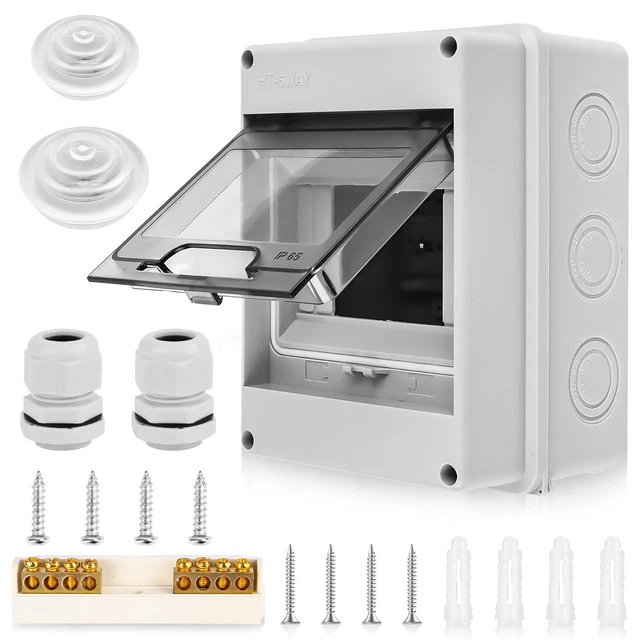 Sicherheit für deine Elektroinstallation! Dieser Aufputz-Sicherungskasten mit 9 Wegen (4x10A + 3x16A + 2x20A) und FI-Schalter ist IP65 geschützt - absolut wasser- und staubdicht. Aus robustem ABS-Kunststoff mit transparenter Abdeckung zur Statuskontrolle. Einfache Montage mit DIN-Schiene und vorgebohrten Kabeleinführungen. Perfekt für Wohnwagen, Garagen, Werkstätten, Hotels und mehr. Schutz vor Spritzwasser, Regen, Staub und UV-Strahlung. Professionelle Lösung für sicheres Elektromanagement ohne aufwändige Unterputz-Installation. 20x15,5x9cm - kompakt aber leistungsstark!