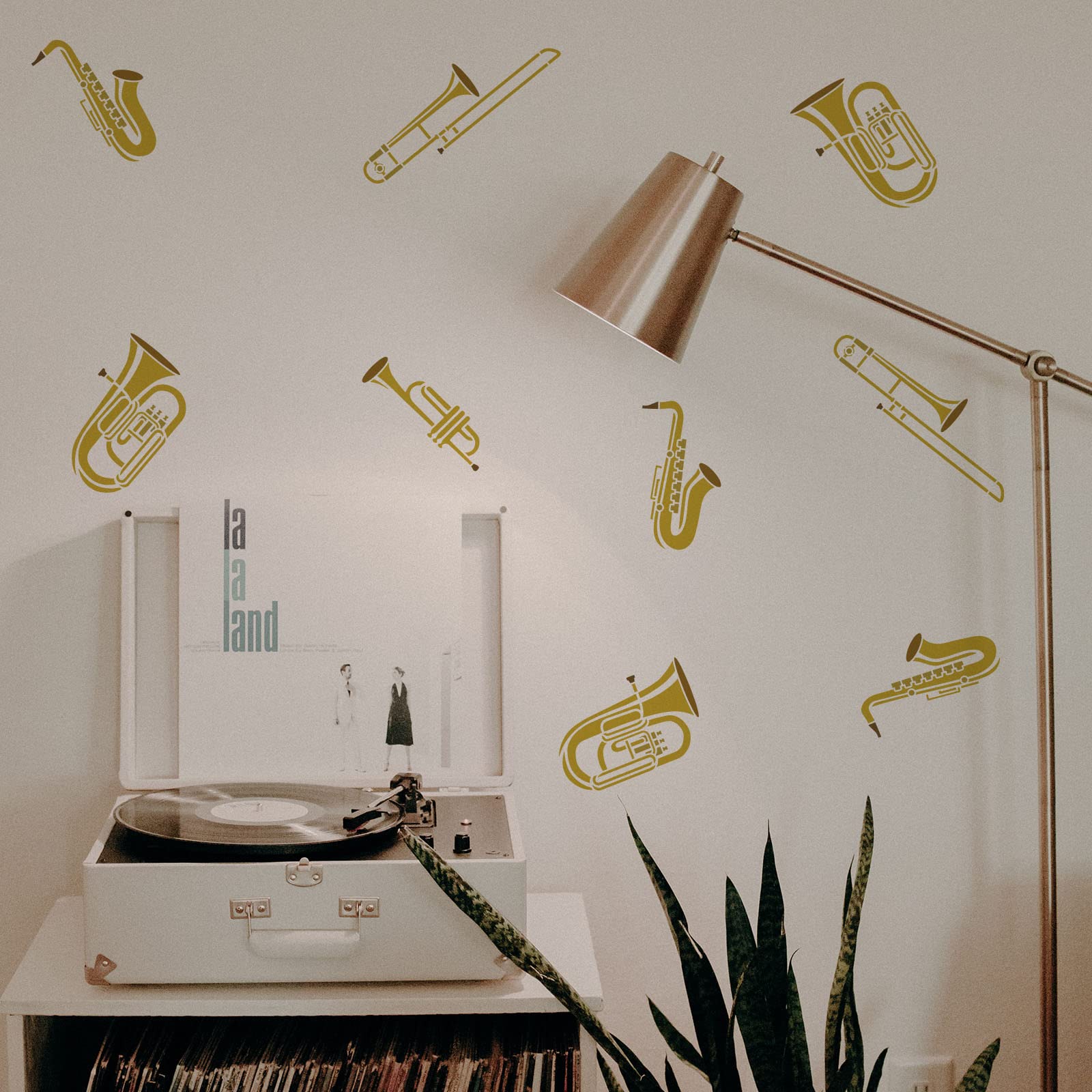 Wow, mit dieser Profi-Schablone machst du aus jeder Oberfläche ein Kunstwerk! Die 30x30cm große Vorlage zeigt coole Blasinstrumente wie Saxophon, Trompete, Tuba und Posaune - perfekt für alle Jazz-Fans. Hergestellt aus umweltfreundlichem PET-Material das richtig langlebig ist und sich leicht reinigen lässt. Einfach mit Wasser und Seife abwaschen und schon kann die Schablone wieder verwendet werden. Die Kanten sind superglatt und sicher - auch für Kinder geeignet. So geht's: Schablone auf Holz, Wand, Möbel oder Stoff legen, mit Malerkrepp fixieren und mit Acrylfarben, Kreide oder Sprühdose bemalen. Zack - fertig ist dein persönliches Kunstwerk! Ideal für deine DIY-Projekte ob im Kinderzimmer, Wohnzimmer oder als Deko im Musikzimmer. Damit werden langweilige Wände zu echten Hinguckern. Die durchscheinende Oberfläche hilft dir, die Schablone perfekt zu positionieren. Deiner Kreativität sind keine Grenzen gesetzt - leg los und verwandle deine vier Wände in eine Jazz-Bühne!