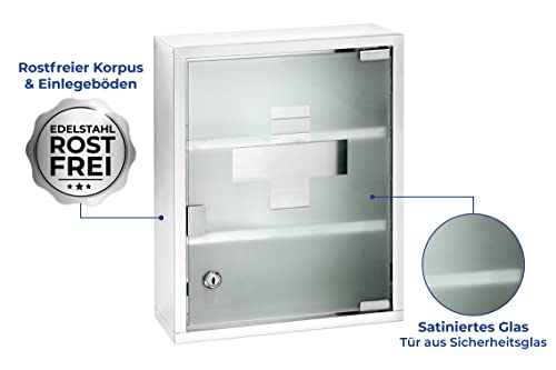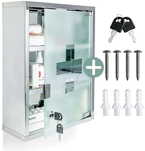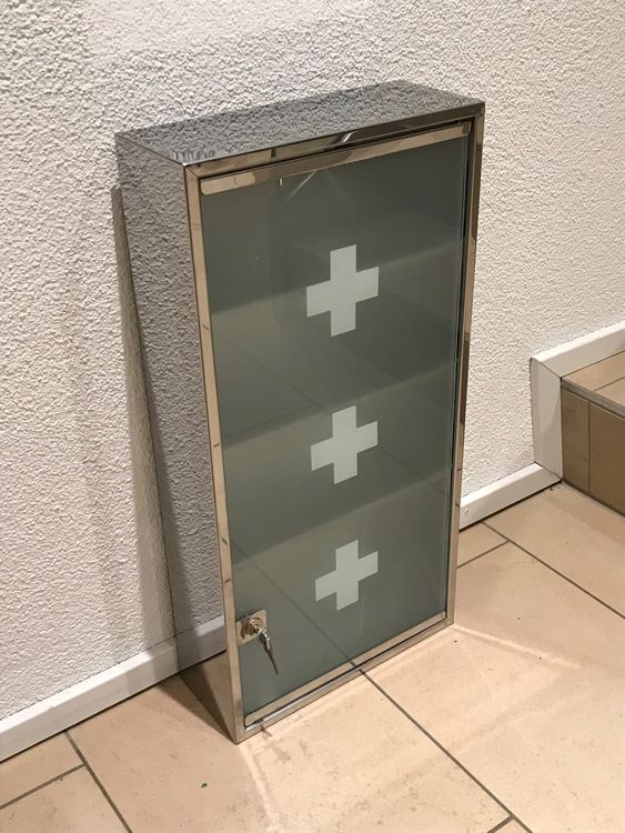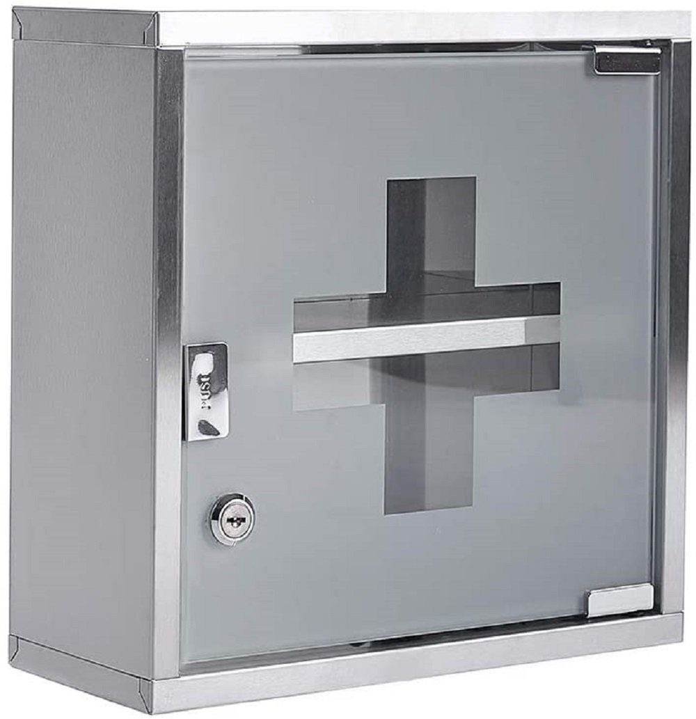 Endlich Ordnung im Medizinschrank! Dieser praktische Wand-Medikamentenschrank aus Aluminium bringt System in deine Hausapotheke. Mit den Maßen 28x27,5x11 cm bietet er super viel Stauraum für alle deine Medikamente, Verbandsmaterial und kleine medizinische Hilfsmittel. Das abschließbare Design ist perfekt für Haushalte mit Kindern - so sind gefährliche Medikamente sicher verwahrt. Die Oberflächenmontage ist total einfach und der praktische Griff macht das Öffnen zum Kinderspiel. Ob im Bad, Flur oder Wohnzimmer - der silberne Look passt überall hin. Super für zu Hause, aber auch ideal fürs Büro oder auf Reisen. Nie wieder suchen nach dem Pflaster oder der Kopfschmerztablette! Alles hat seinen festen Platz und ist trotzdem schnell griffbereit. Ein echter Organisationstipp für jeden Haushalt!