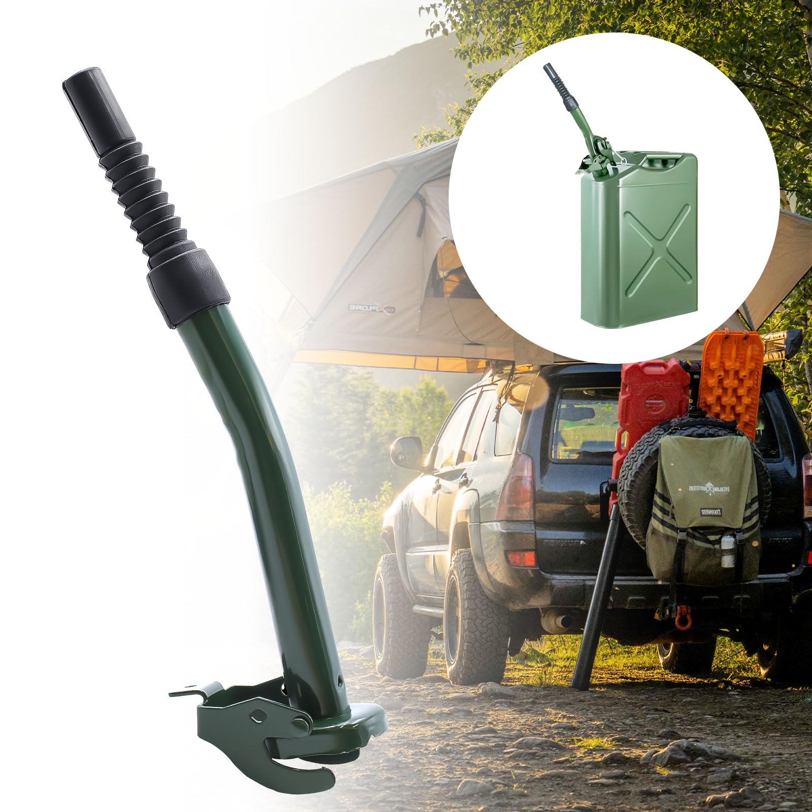 Mann, dieser Einfüllstutzen von WYYFXY ist ja mal richtig praktisch! Mit 26 cm Länge erreichst du damit auch schwer zugängliche Tanköffnungen. Aus hochwertigem Karbonstahl gefertigt ist der Ausgießer robust und langlebig - kein Rost, keine Verformungen!\n\nDie mitgelieferte Gummidüse ist aus qualitativ hochwertigem, weichem Gummi, das rissfest ist und sich gut an verschiedene Öffnungen anpasst. Zusammen mit dem 3 mm dicken Dichtring an der Verbindung wird ein Auslaufen zuverlässig verhindert.\n\nDas clevere Design mit Belüftungslöchern sorgt für eine gute Luftzirkulation und einen schnelleren Flüssigkeitsfluss. So geht das Befüllen viel einfacher von der Hand! Der Schnellverschluss ermöglicht eine sichere und feste Montage am Metallkanister - nichts wackelt oder fällt ab.\n\nEinsatzmöglichkeiten gibt's mehr als genug: Perfekt für 5-, 10- und 20-Liter-Kanister mit Bajonettverschluss. Ob du jetzt deinen Anhänger, Traktor, Rasenmäher oder Generatortank befüllen musst - mit diesem Ausgießer klappt's problemlos.\n\nIn der Automobilindustrie, Landwirtschaft oder im Handwerk ist dieses Teil nicht wegzudenken. Aber auch für den privaten Gebrauch ist es super praktisch. Endlich kein Herumgekleckere mehr beim Kanister umfüllen!\n\nIm Lieferumfang ist alles dabei: Ein 14,5 cm großer Ausgießer und eine 12 cm große 360-Grad-Gummidüse. So bist du für alle Fälle gewappnet. Eine wirklich sinnvolle Anschaffung für jeden, der regelmäßig mit Kanistern hantiert!